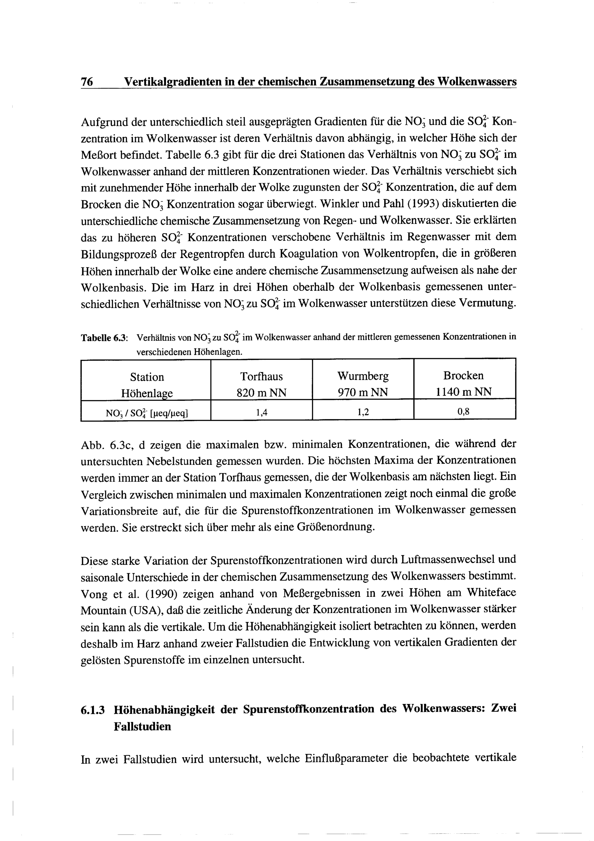 6. Vertikalgradienten in der chemischen Zusammensetzung des Wolkenwassers
