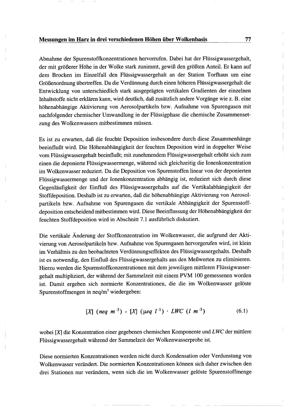 6.1. Die chemische Zusammensetzung des Wolkenwassers: Messungen im Harz in drei verschiedenen...