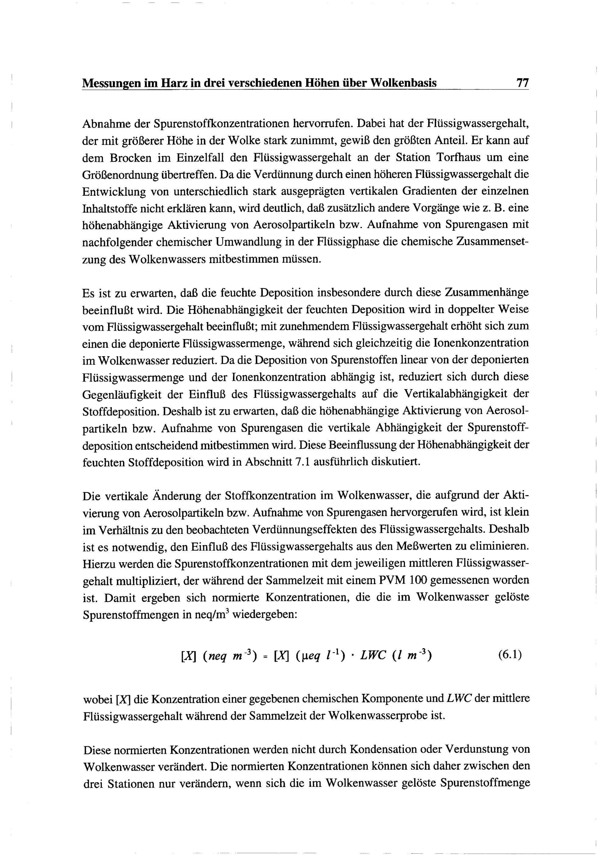 6. Vertikalgradienten in der chemischen Zusammensetzung des Wolkenwassers