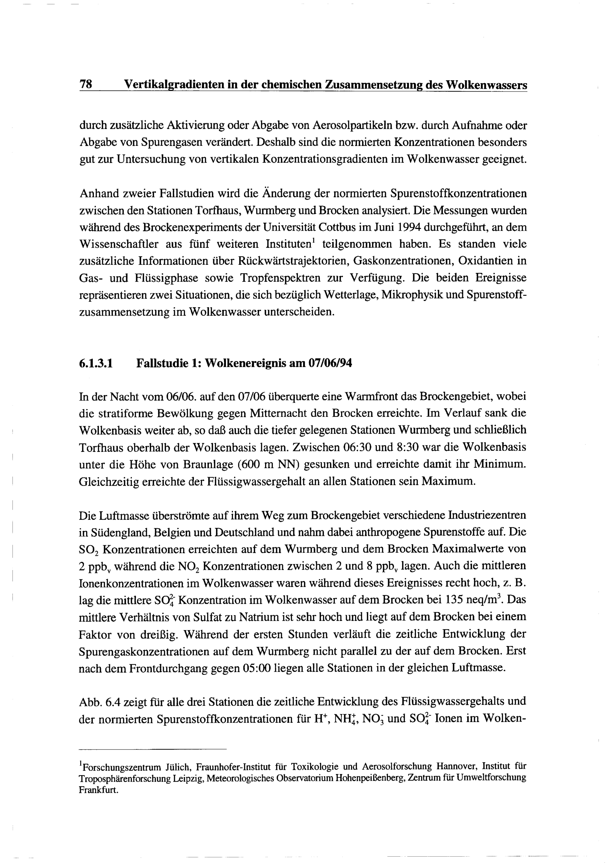 6.1. Die chemische Zusammensetzung des Wolkenwassers: Messungen im Harz in drei verschiedenen...