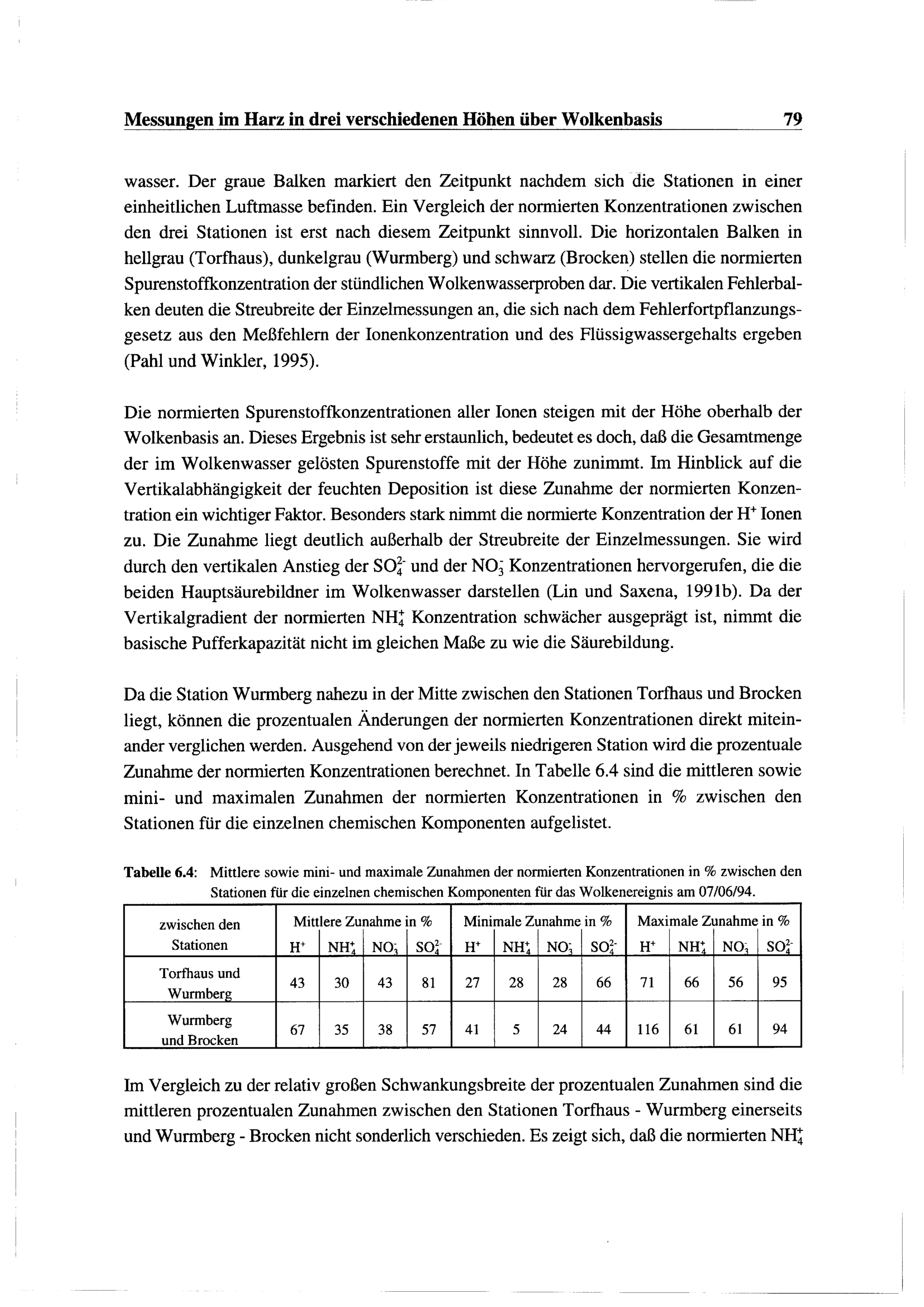 6.1. Die chemische Zusammensetzung des Wolkenwassers: Messungen im Harz in drei verschiedenen...