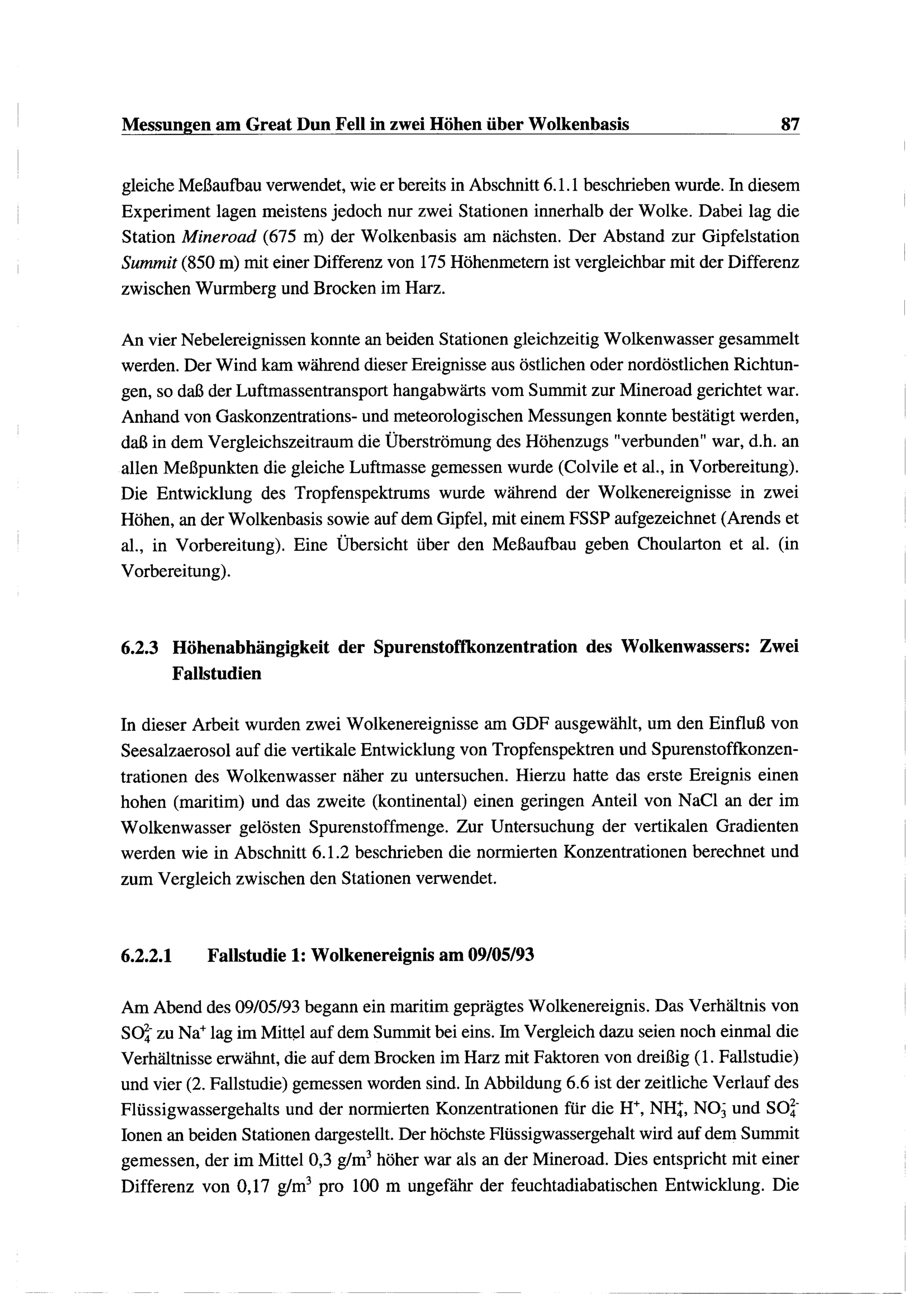 6.2. Die chemische Zusammensetzung des Wolkenwassers: Messungen am Great Dun Fell...