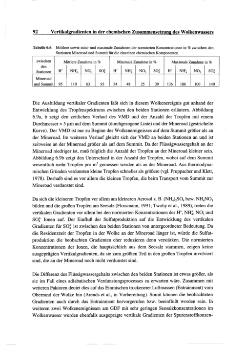 6. Vertikalgradienten in der chemischen Zusammensetzung des Wolkenwassers