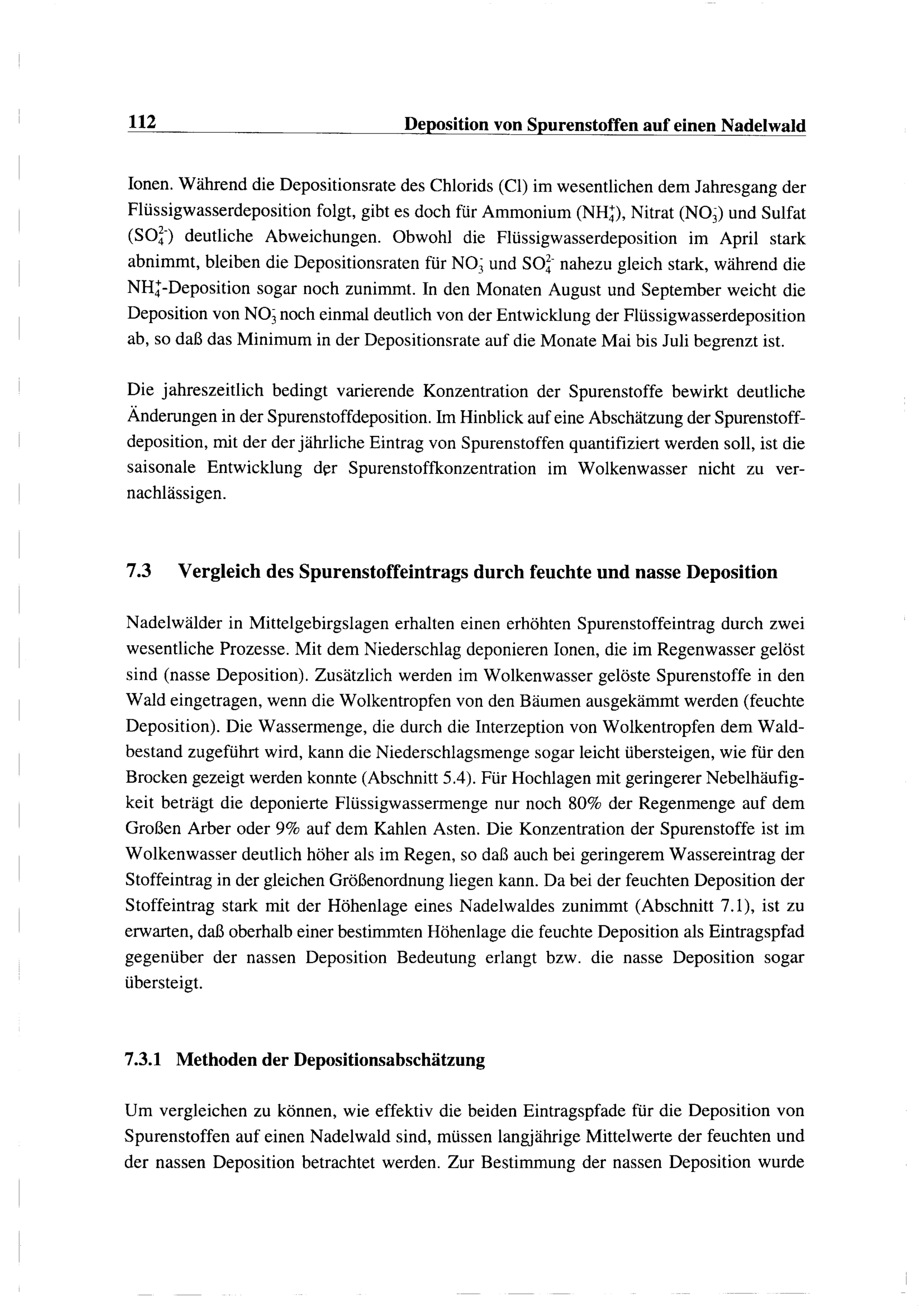 7. Deposition von Spurenstoffen auf einen Nadelwald