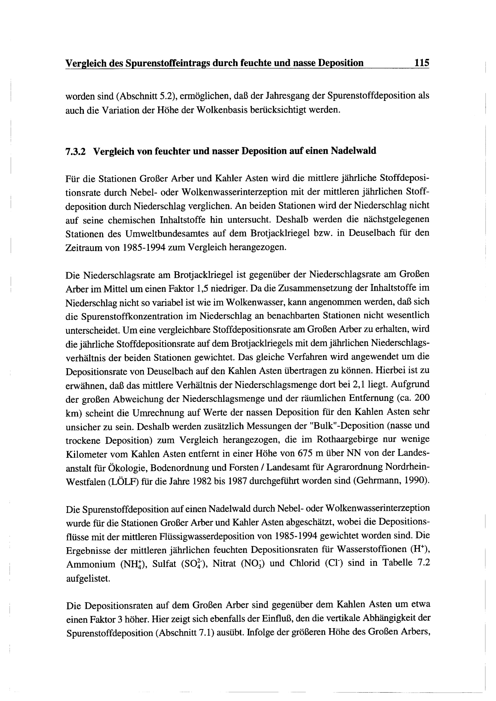 7. Deposition von Spurenstoffen auf einen Nadelwald