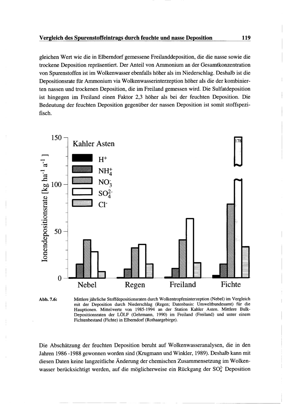 7. Deposition von Spurenstoffen auf einen Nadelwald