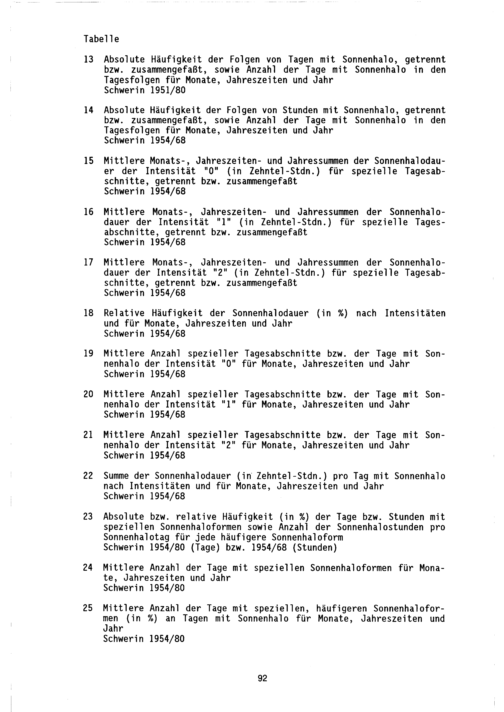 Klimatologisch-statistische Ergebnisse der Sonnenhalobeobachtungen 1951 - 1980 in Schwerin (Mecklenburg) / von Günther Schubert, Wolfgang Hänsch und Wolfgang Thierbach
