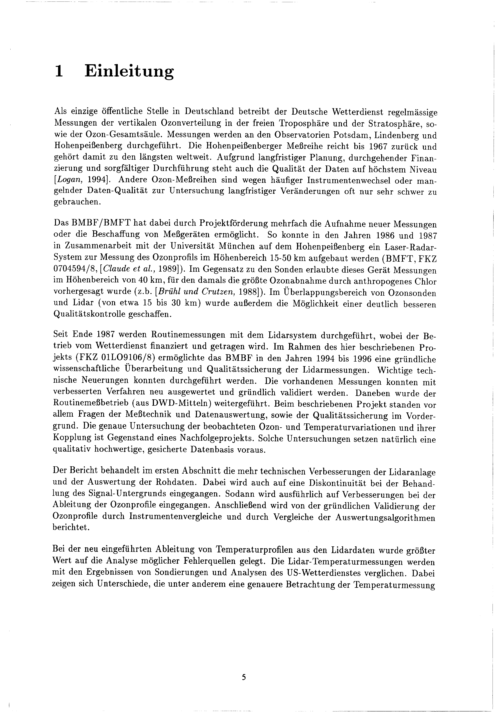 Ozon- und Temperaturmessungen mittels Lidar am Hohenpeißenberg / von Wolfgang Steinbrecht, Peter Winkler und Hans Claude