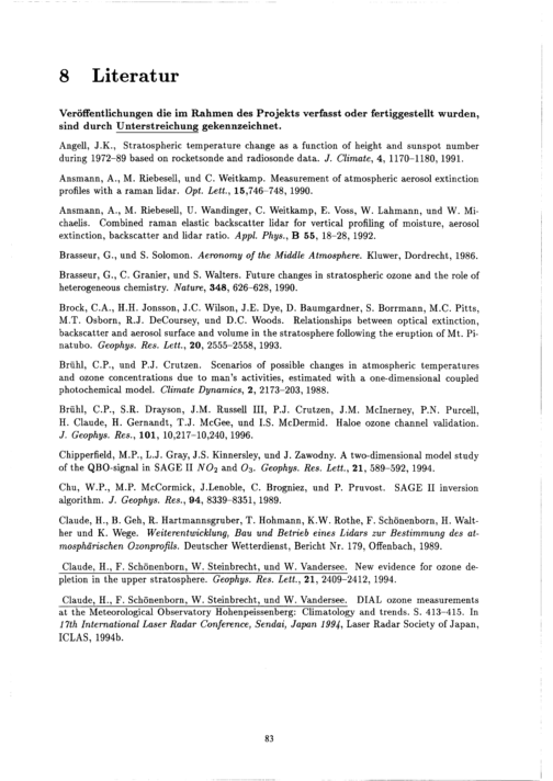Ozon- und Temperaturmessungen mittels Lidar am Hohenpeißenberg / von Wolfgang Steinbrecht, Peter Winkler und Hans Claude