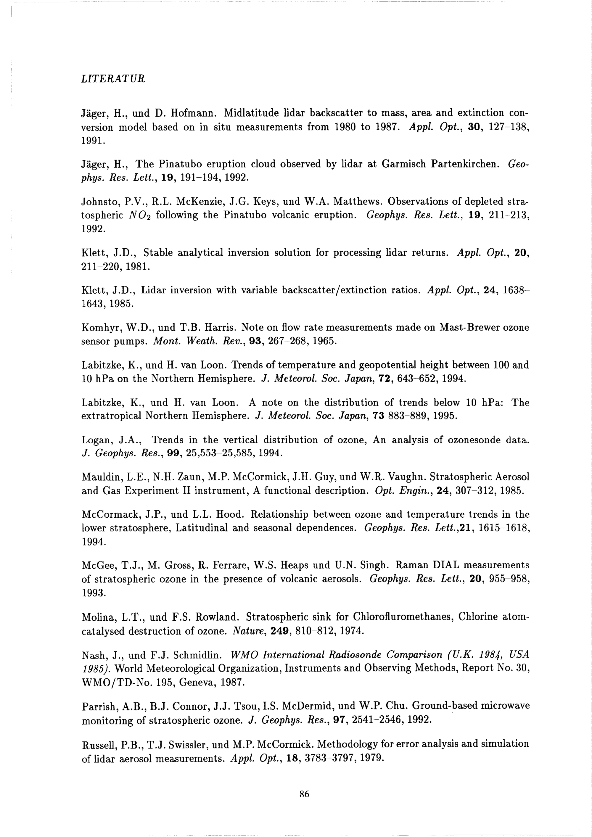 Ozon- und Temperaturmessungen mittels Lidar am Hohenpeißenberg / von Wolfgang Steinbrecht, Peter Winkler und Hans Claude