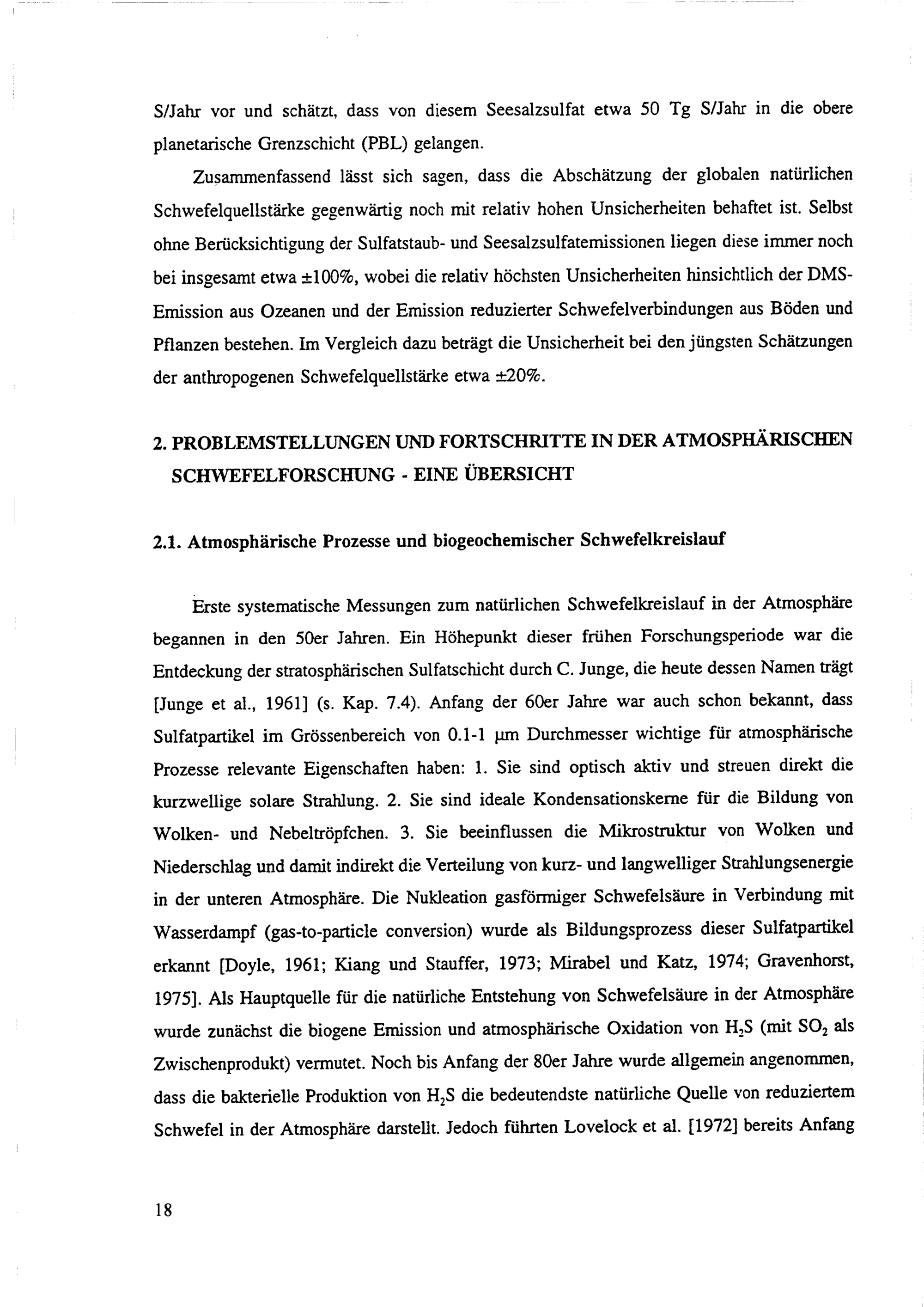 2. Problemstellungen und Fortschritte in der atmosphärischen Schwefelforschung - eine Übersicht
