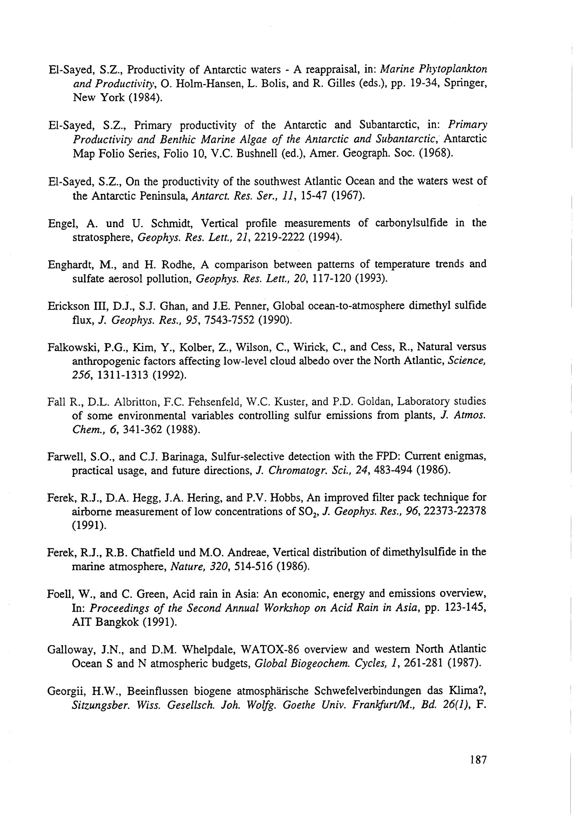 5. Abschätzung des Beitrags natürlicher Quellen zum globalen atmosphärischen Schwefelhaushalt