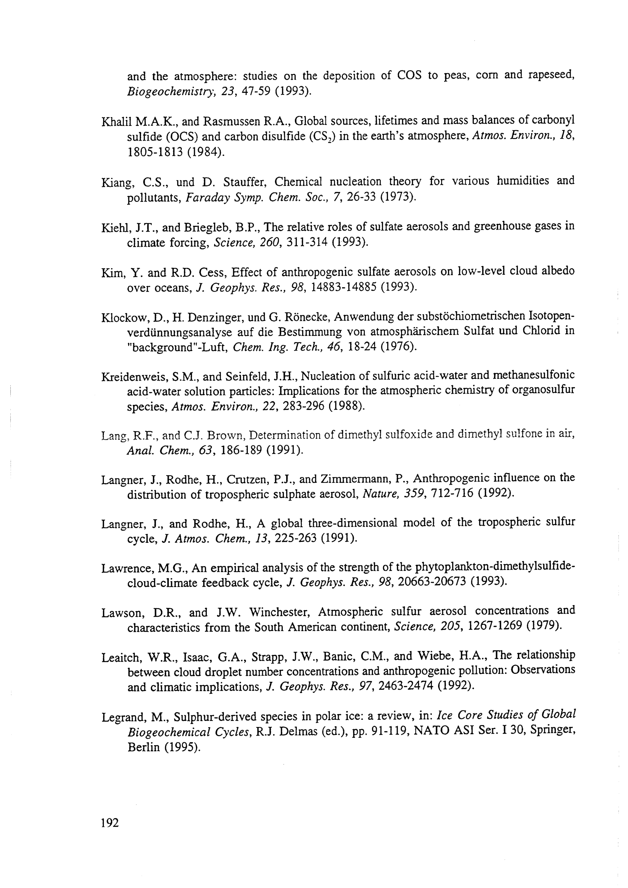 5. Abschätzung des Beitrags natürlicher Quellen zum globalen atmosphärischen Schwefelhaushalt