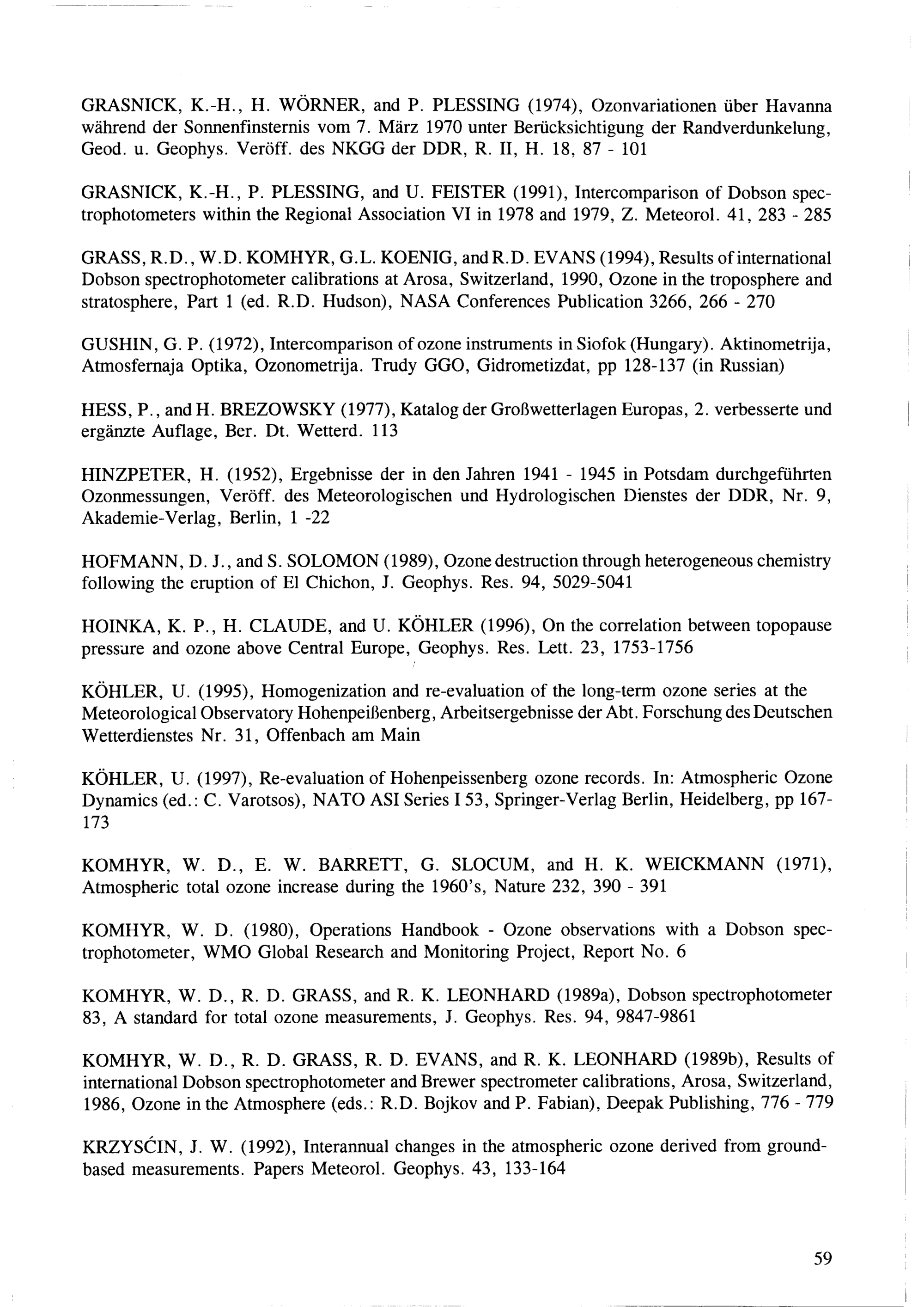 Climatology of total ozone measurements 1964 - 1997 at Potsdam : based on re-evaluated Dobson series / by Dietrich Spänkuch ...
