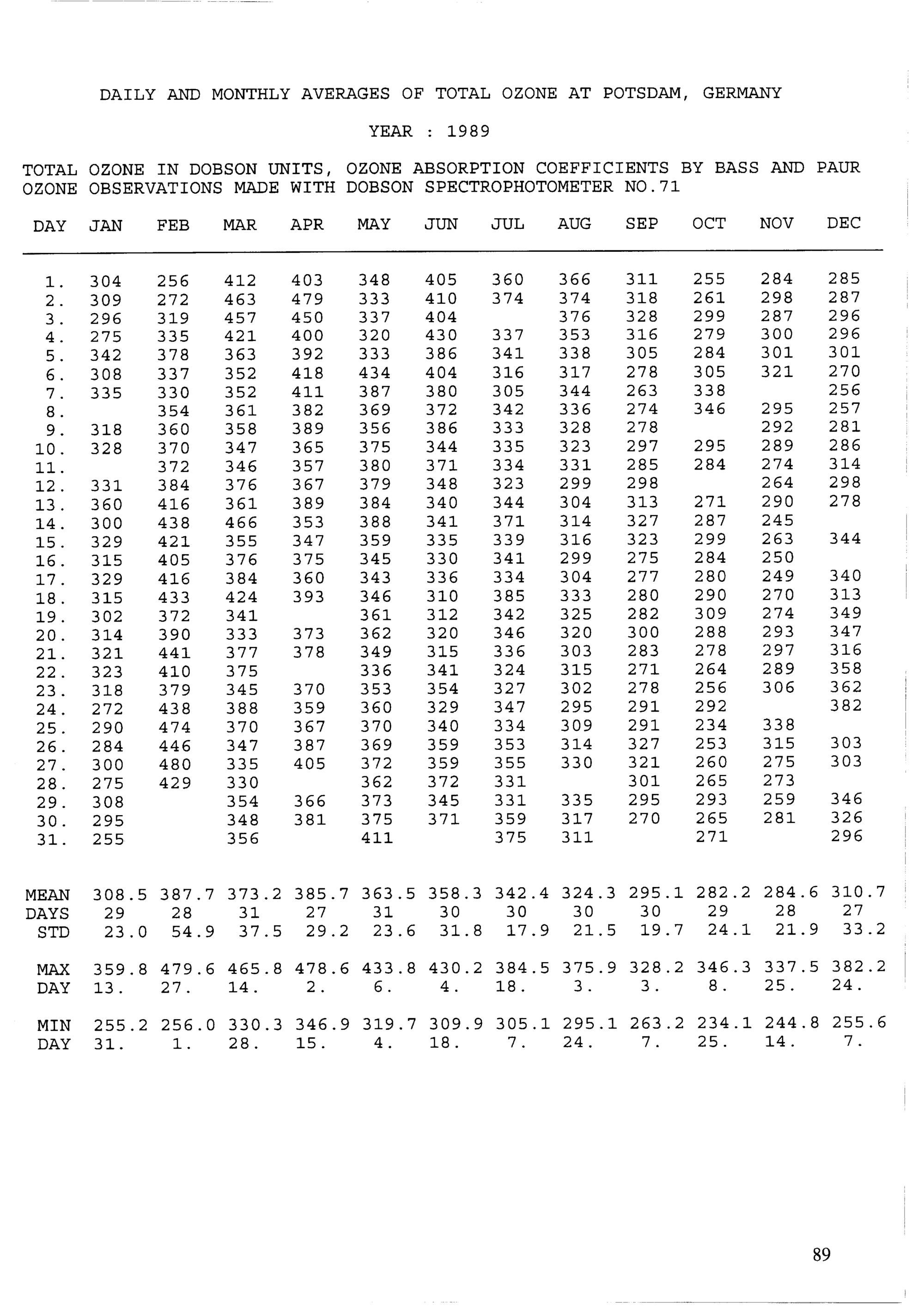 Climatology of total ozone measurements 1964 - 1997 at Potsdam : based on re-evaluated Dobson series / by Dietrich Spänkuch ...