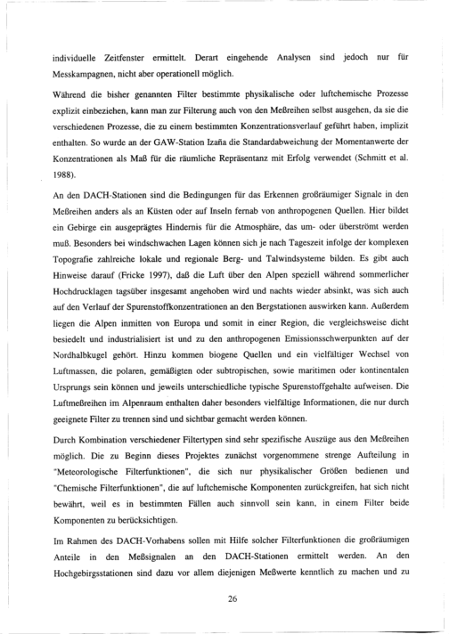Filterung luftchemischer Meßreihen im Alpenraum zur Charakterisierung ihrer Repräsentanz : GAW-DACH-Projekt / von Wolfgang Fricke ...