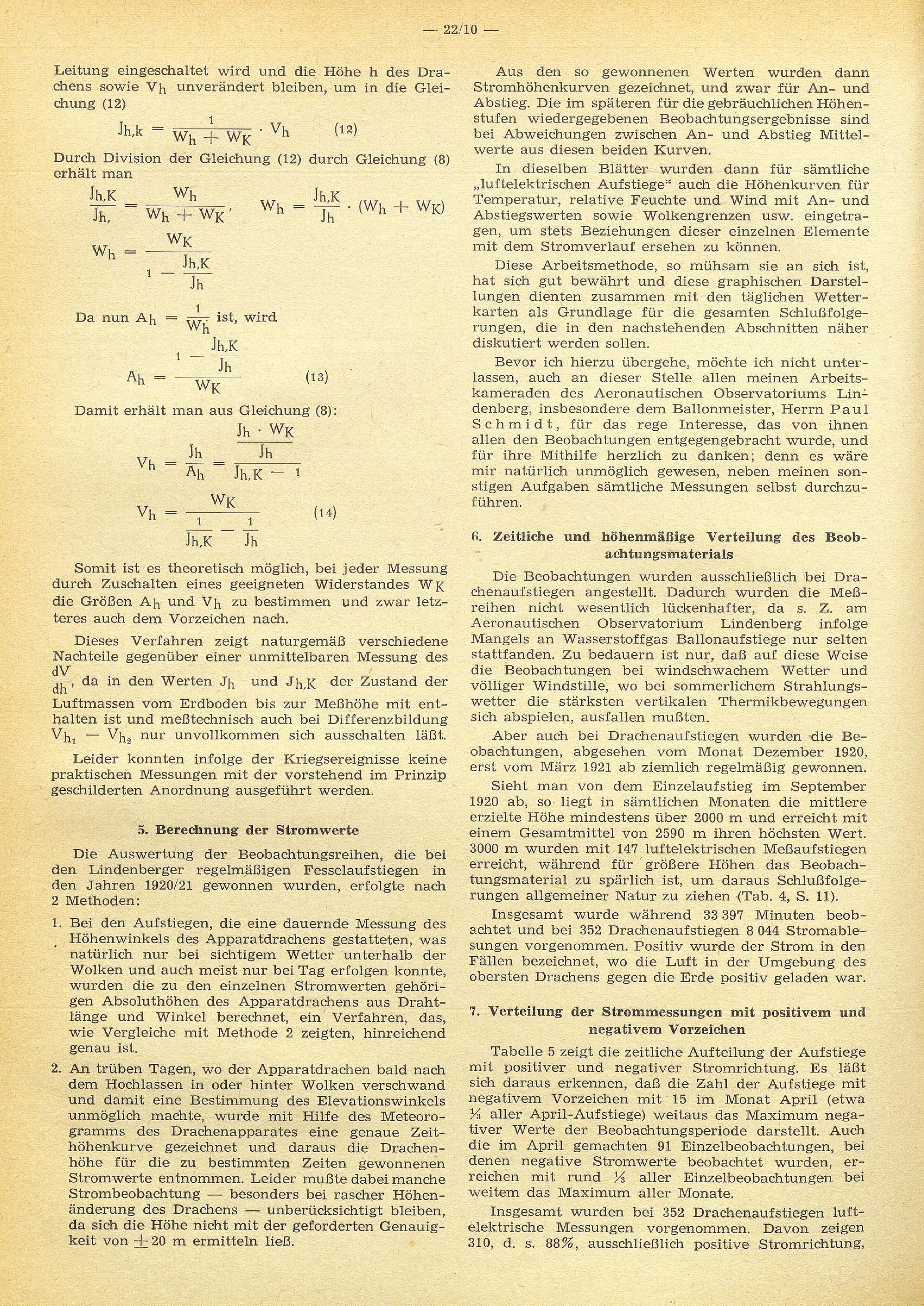 Versuchsergebnisse der luftelektrischen Höhenforschung am Aeronautischen Observatorium...