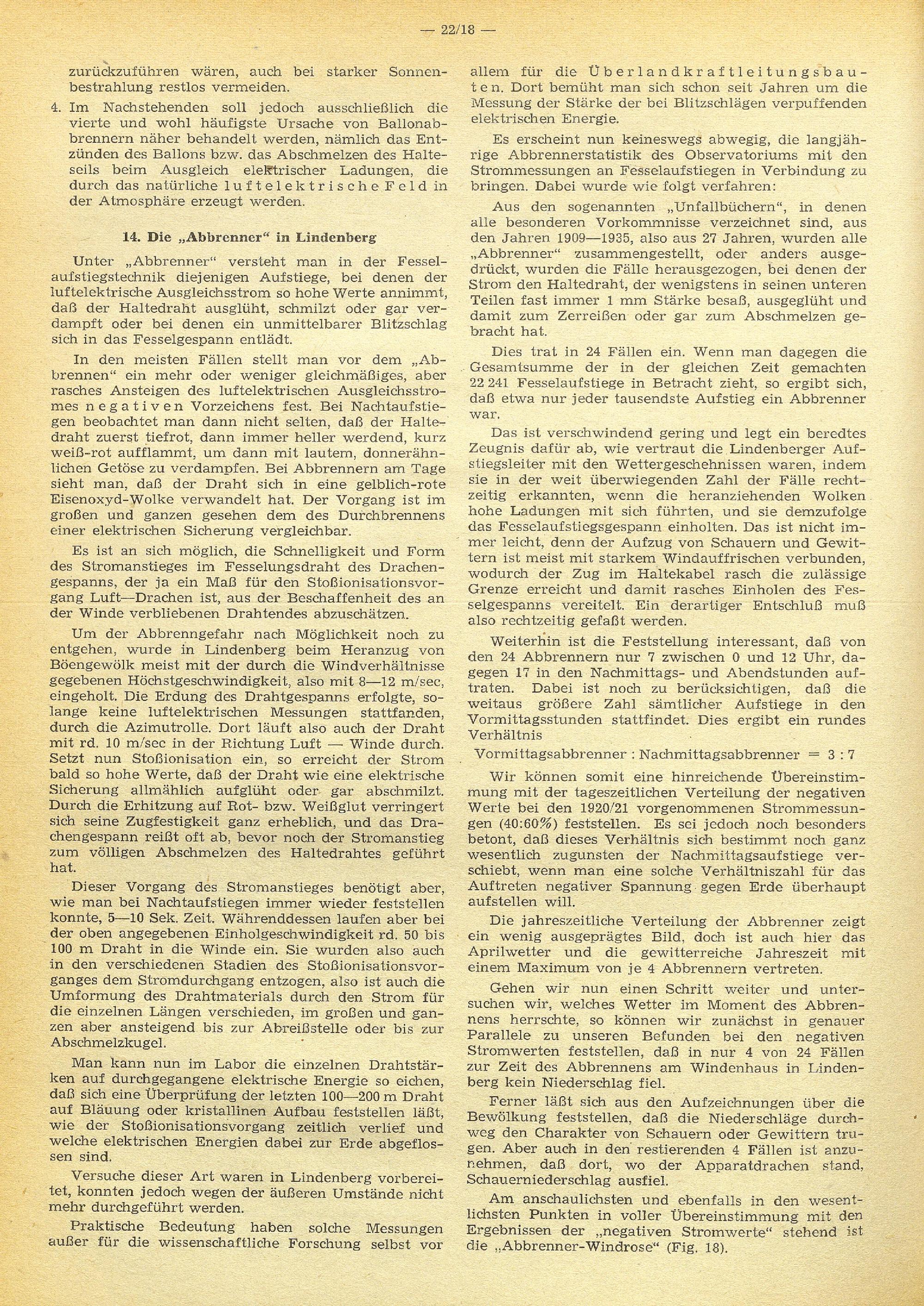 B. Anwendung der Ergebnisse der Messungen des luftelektrischen Ausgleichstromes auf...
