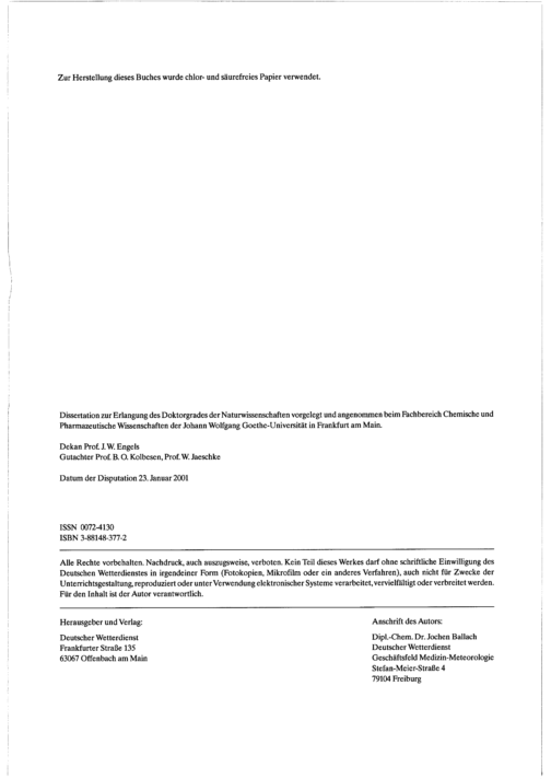 Entwicklung und Absicherung leistungsfähiger Analyseverfahren zur Bestimmung von Benzol und Ruß in der Lufthygiene / von Jochen Ballach