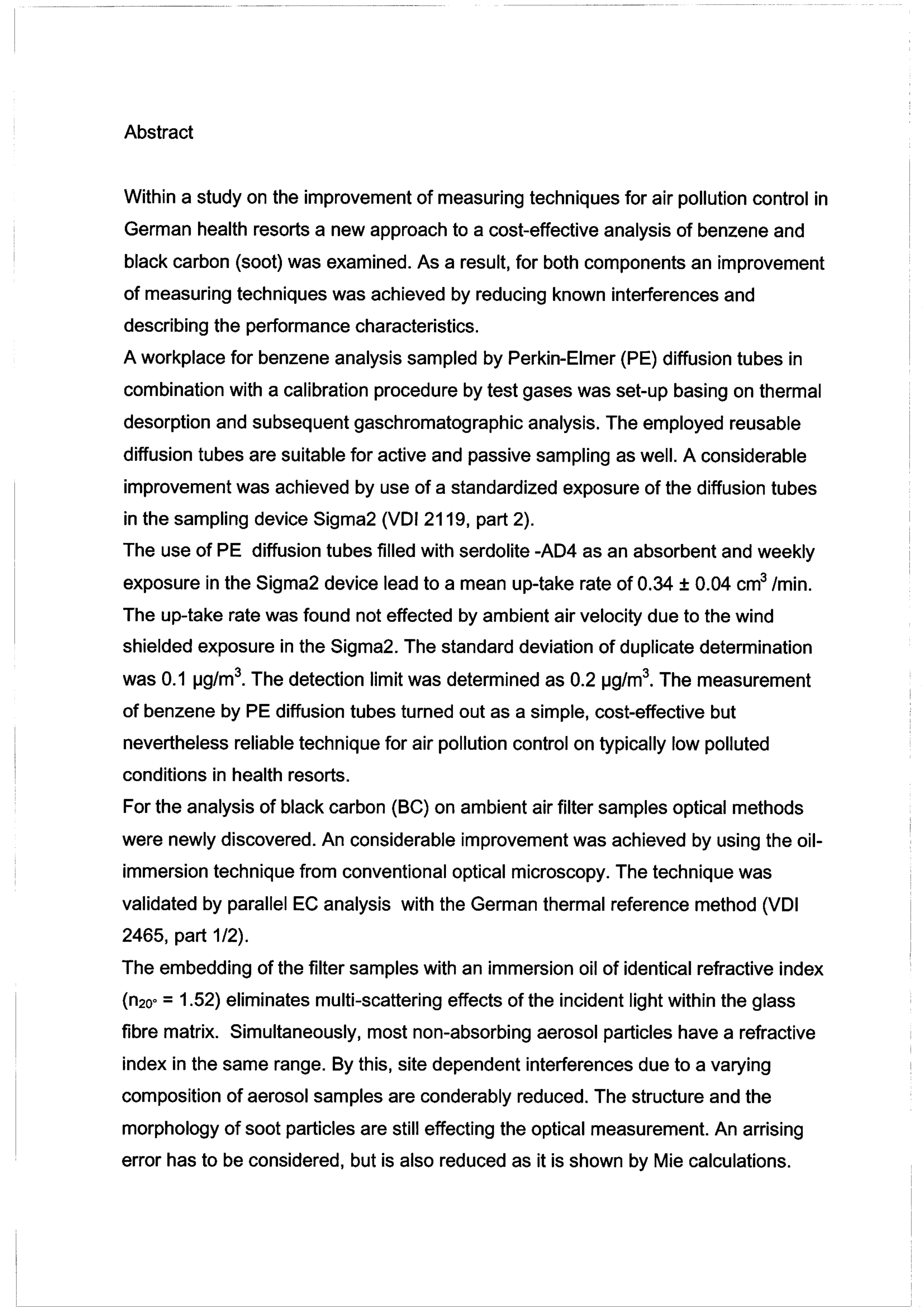 Entwicklung und Absicherung leistungsfähiger Analyseverfahren zur Bestimmung von Benzol und Ruß in der Lufthygiene / von Jochen Ballach