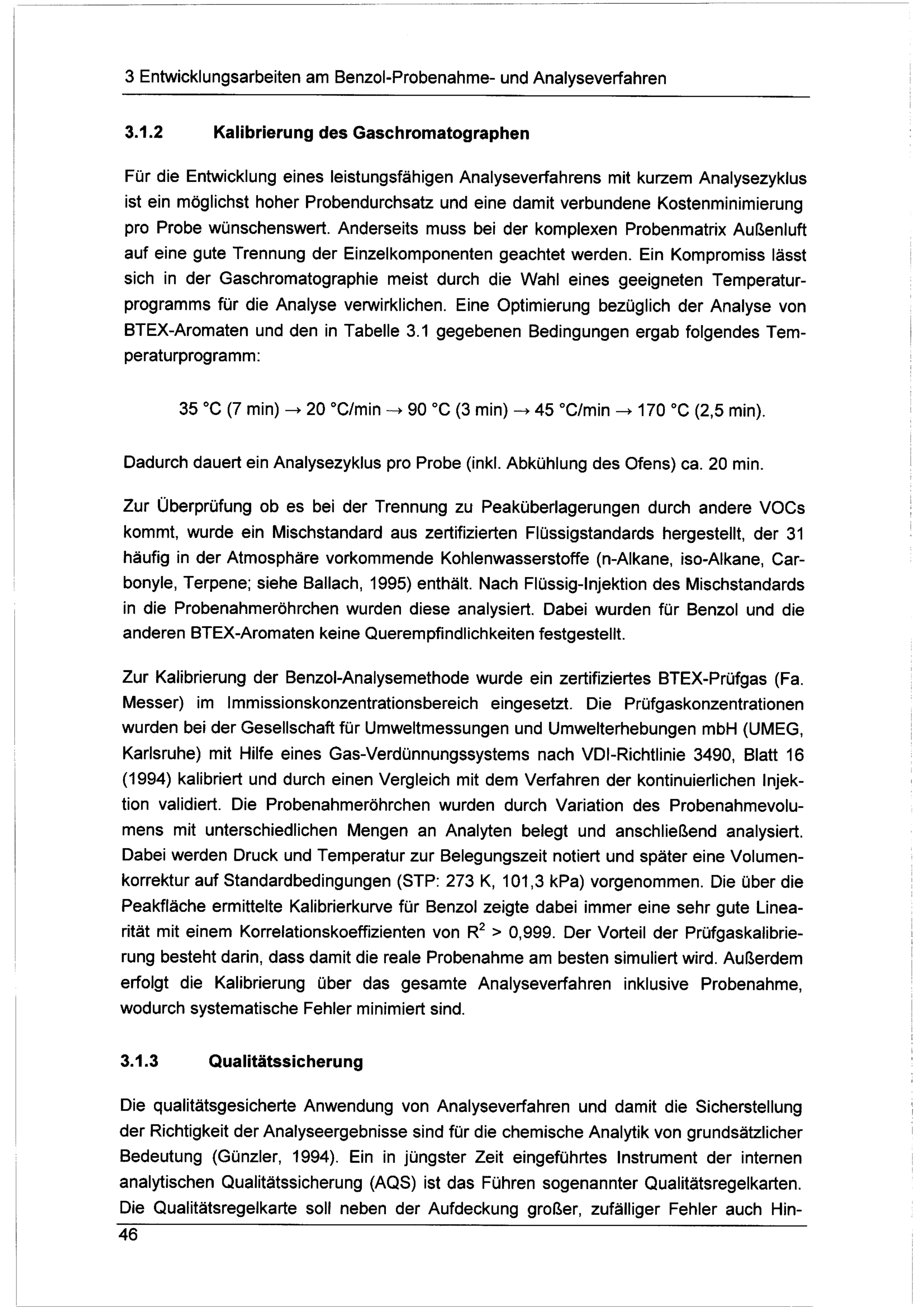 Entwicklung und Absicherung leistungsfähiger Analyseverfahren zur Bestimmung von Benzol und Ruß in der Lufthygiene / von Jochen Ballach