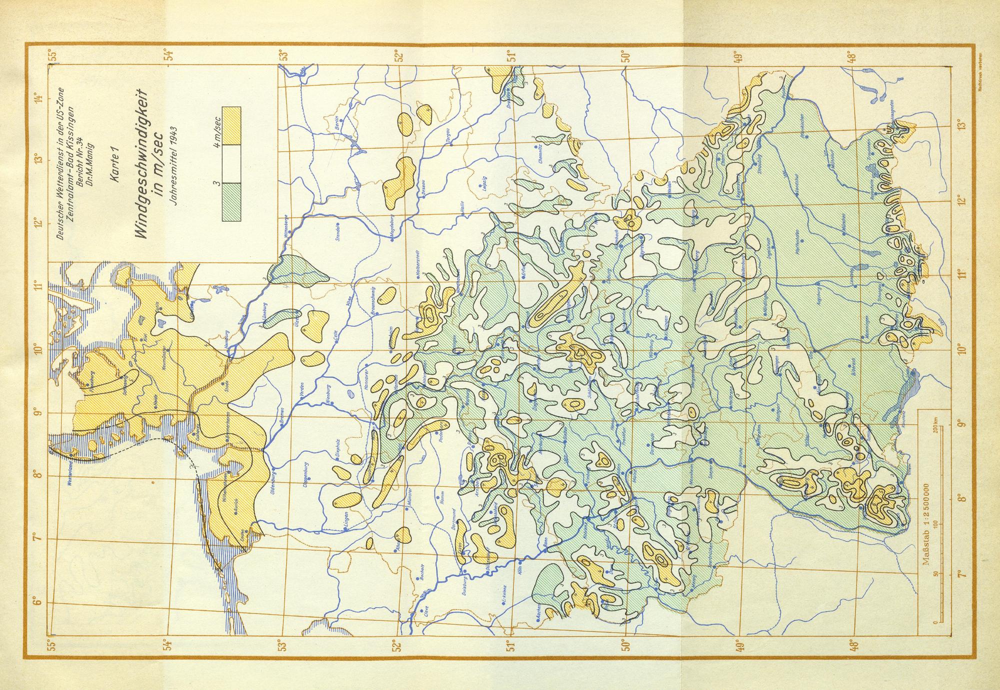 Karte der Windgeschwindigkeit für das westliche Deutschland / von M. Manig