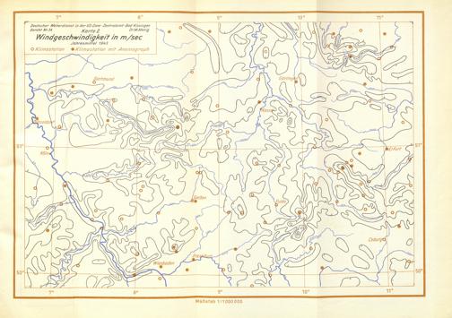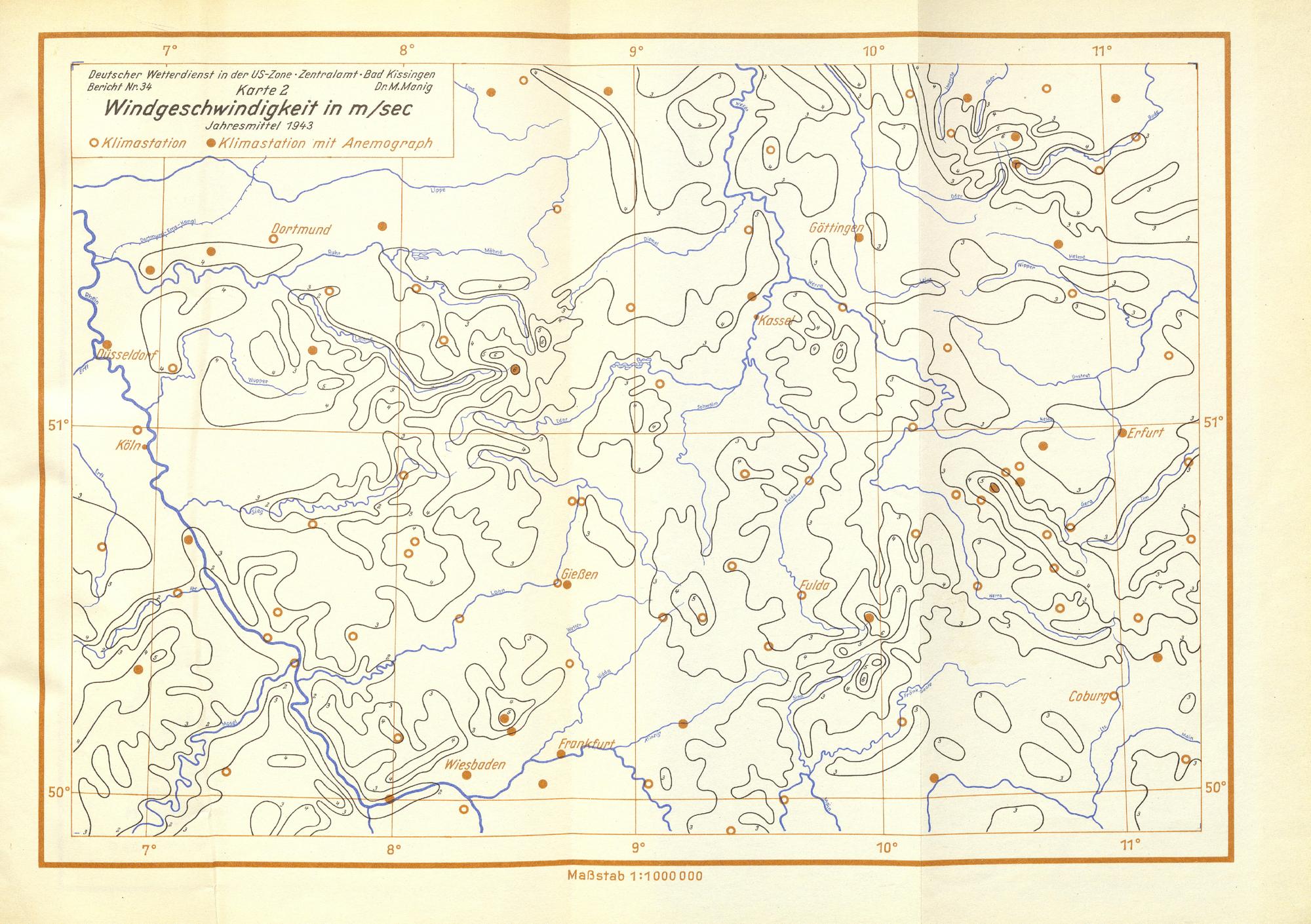 Karte der Windgeschwindigkeit für das westliche Deutschland / von M. Manig