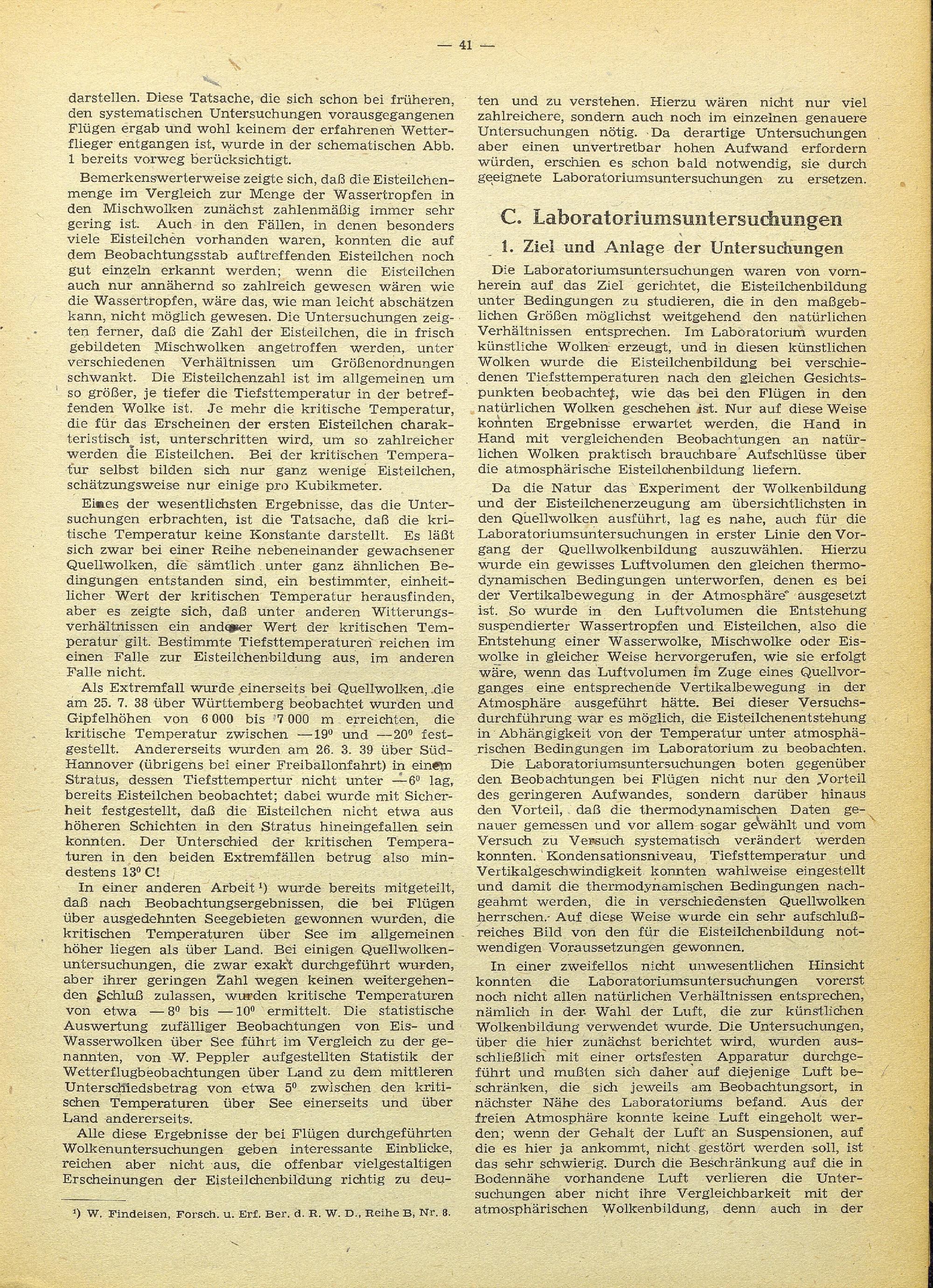Die Arbeiten und Forschungsergebnisse der Wolkenforschungsstelle des Reichsamts für...