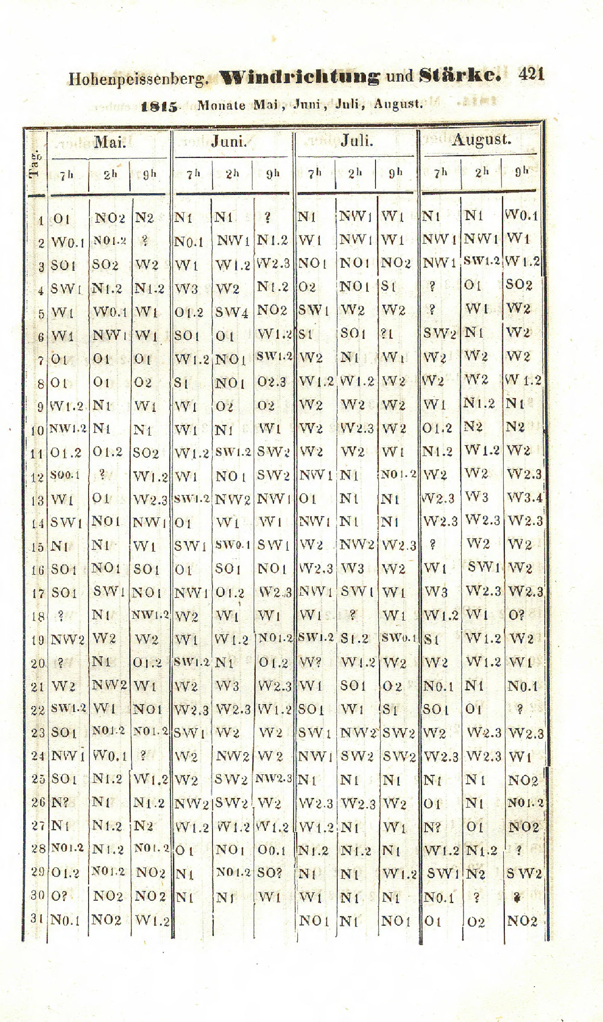 Windrichtung und Stärke von 1800-1850