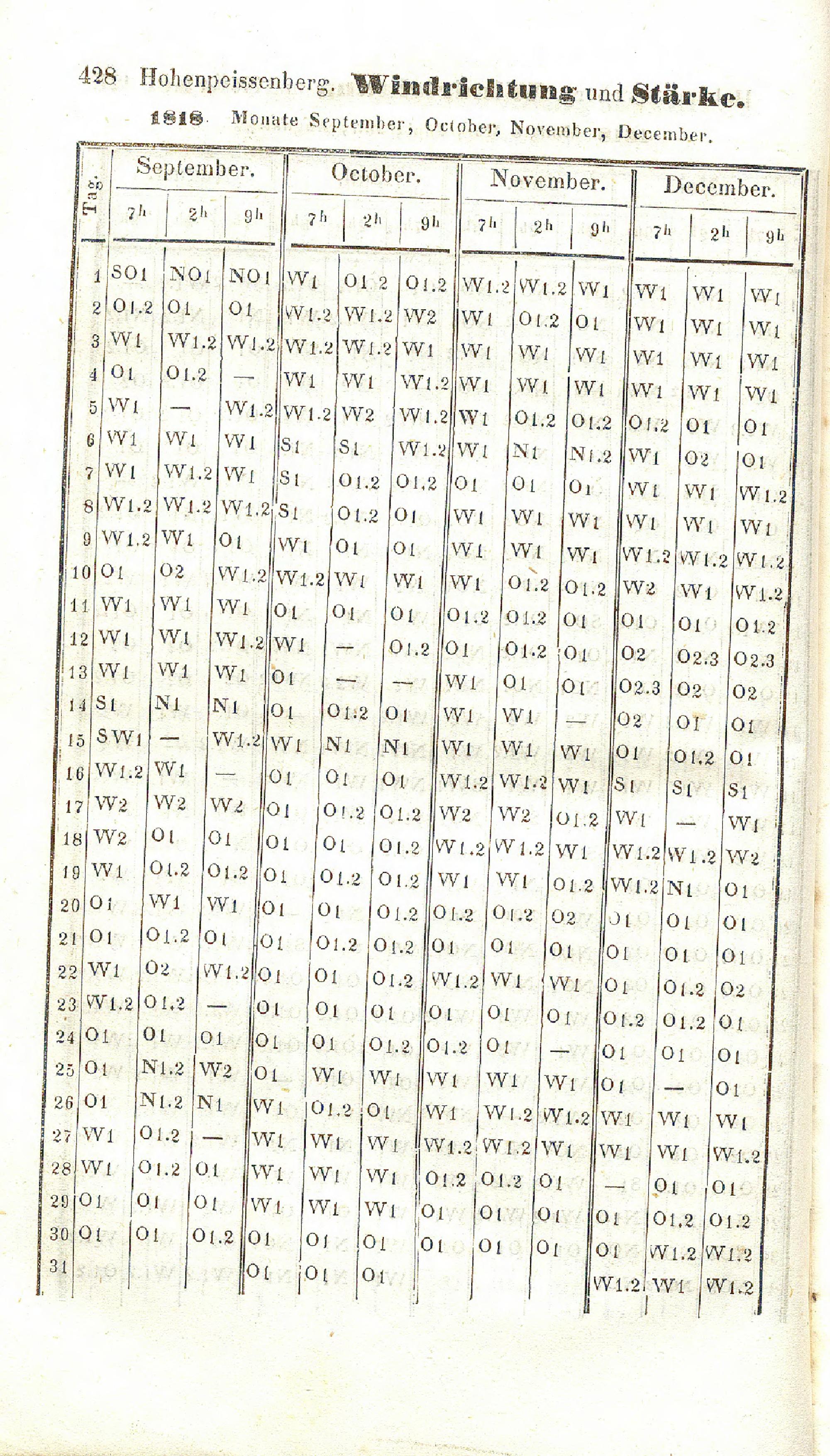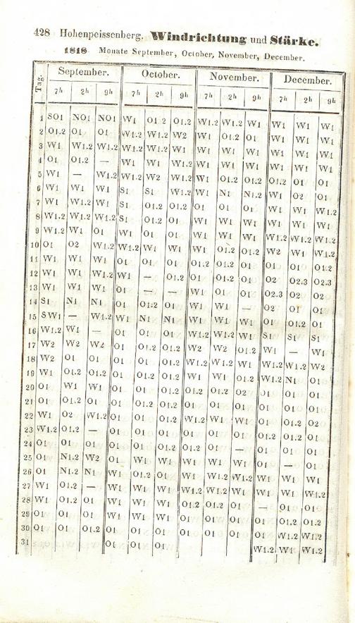 Windrichtung und Stärke von 1800-1850