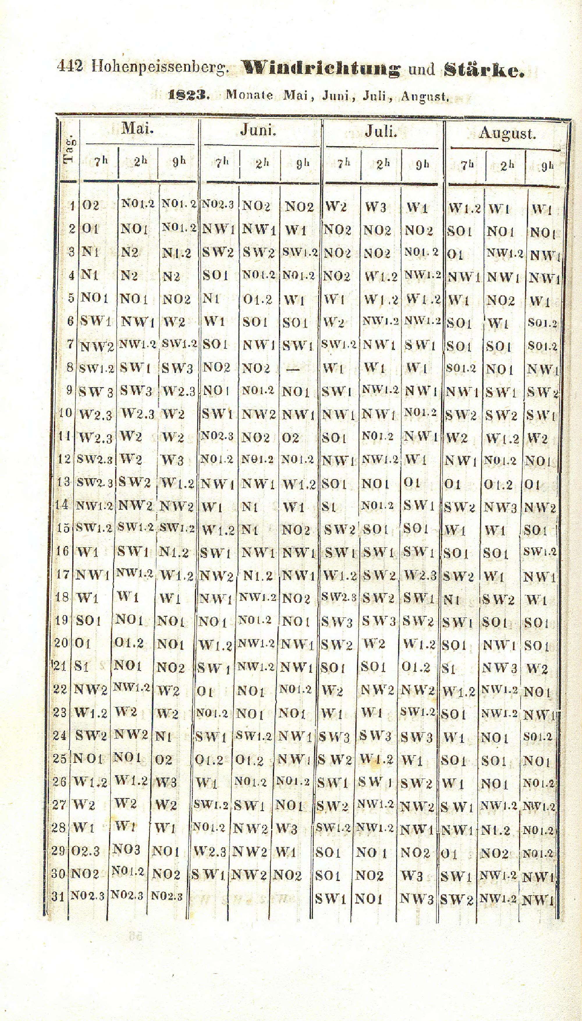 Beobachtungen des meteorologischen Observatoriums auf dem Hohenpeissenberg von 1792...