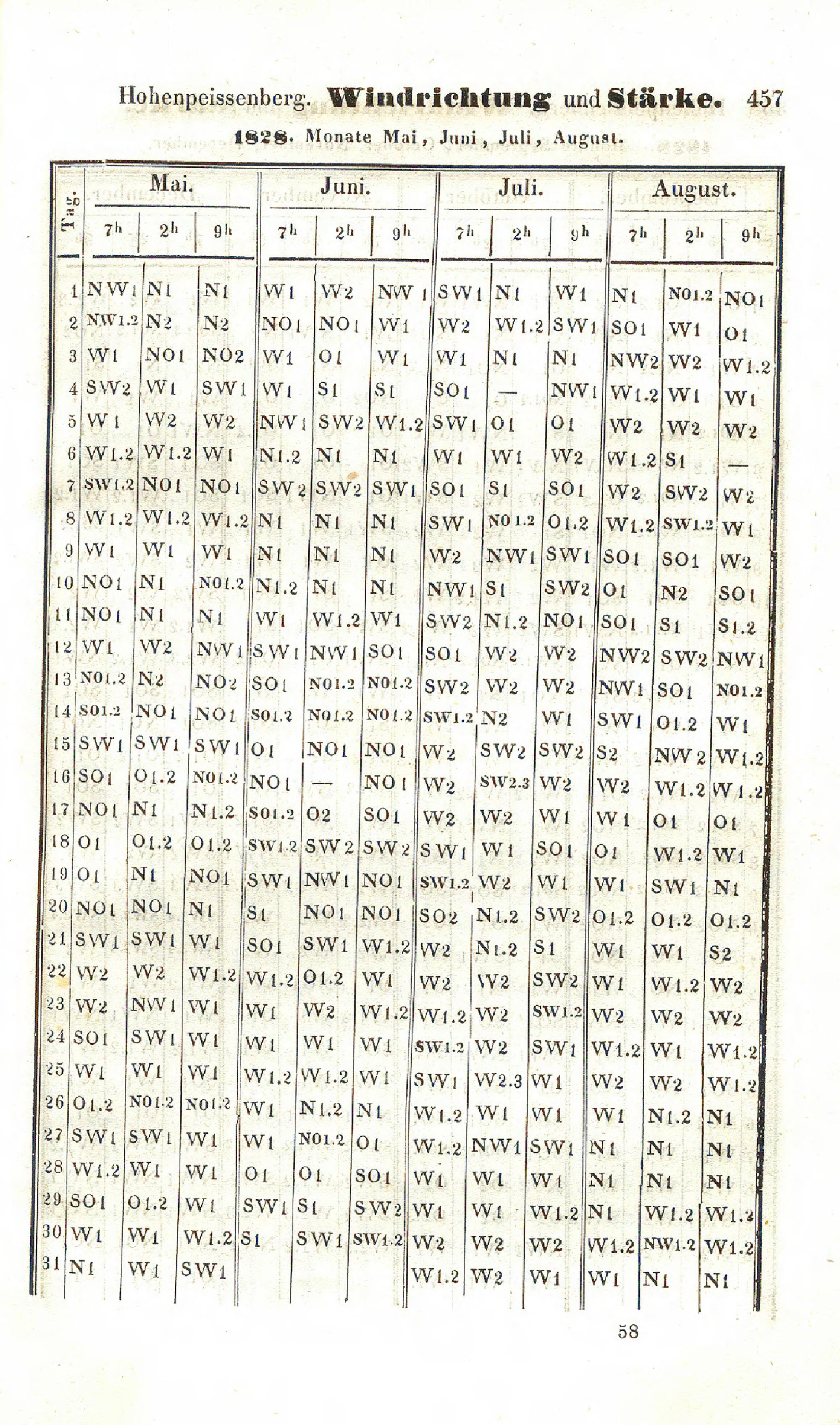 Windrichtung und Stärke von 1800-1850