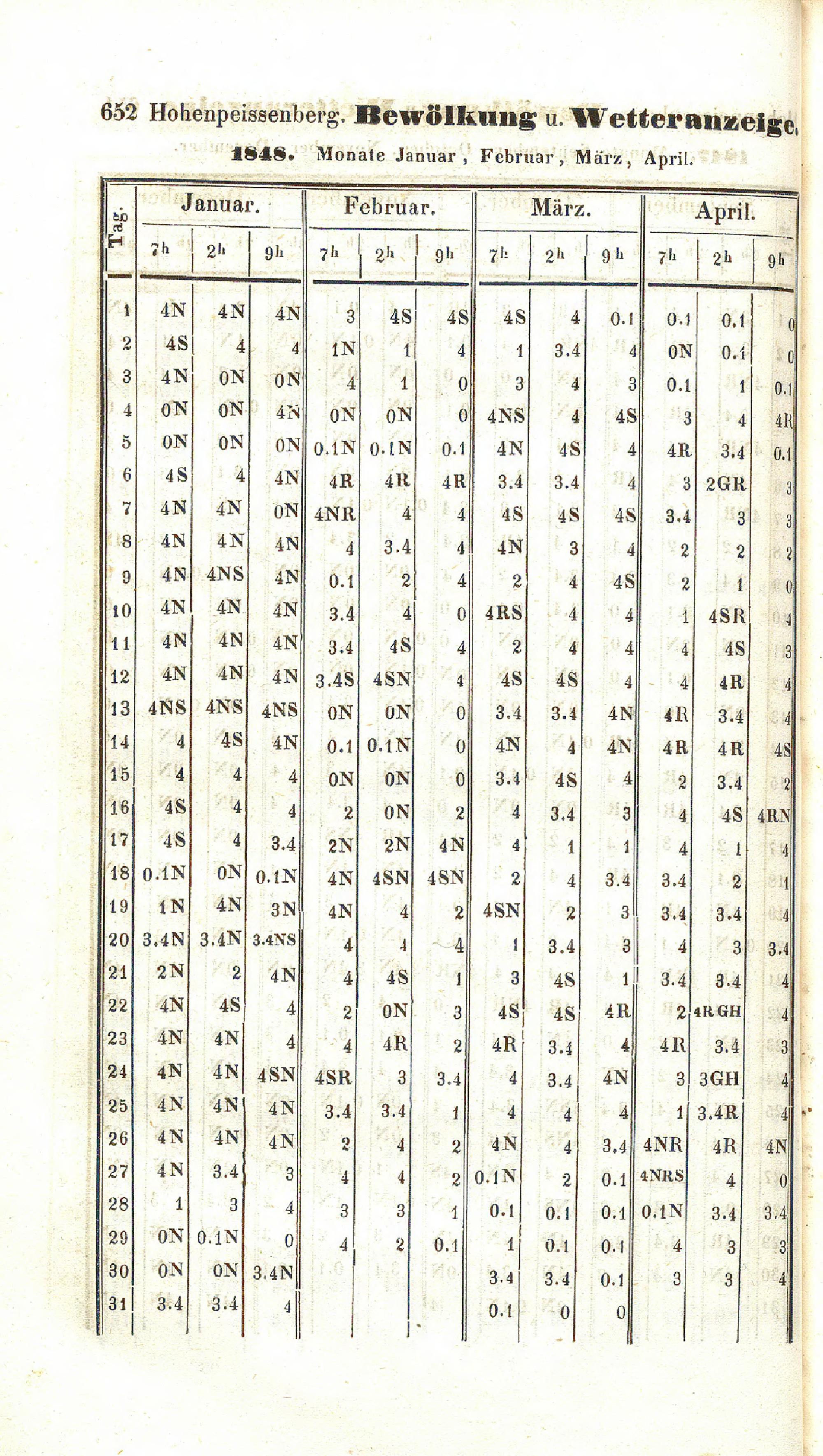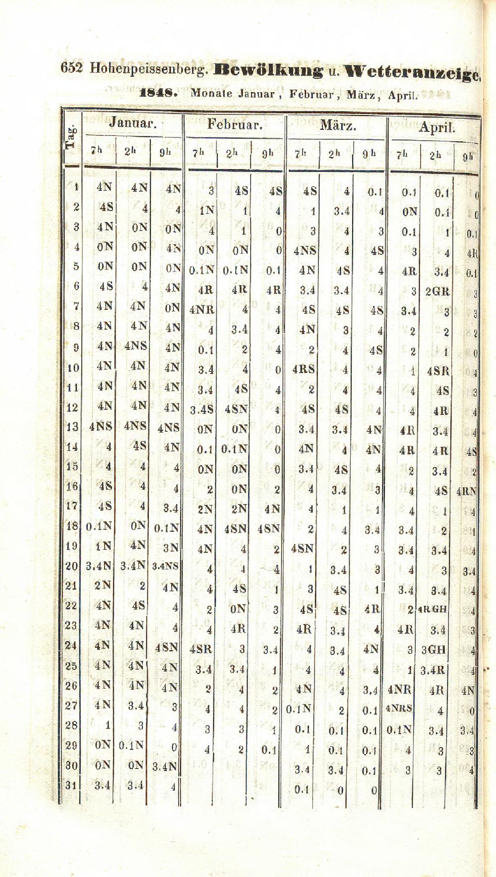 Bewölkung und Wetteranzeige von 1800-1850