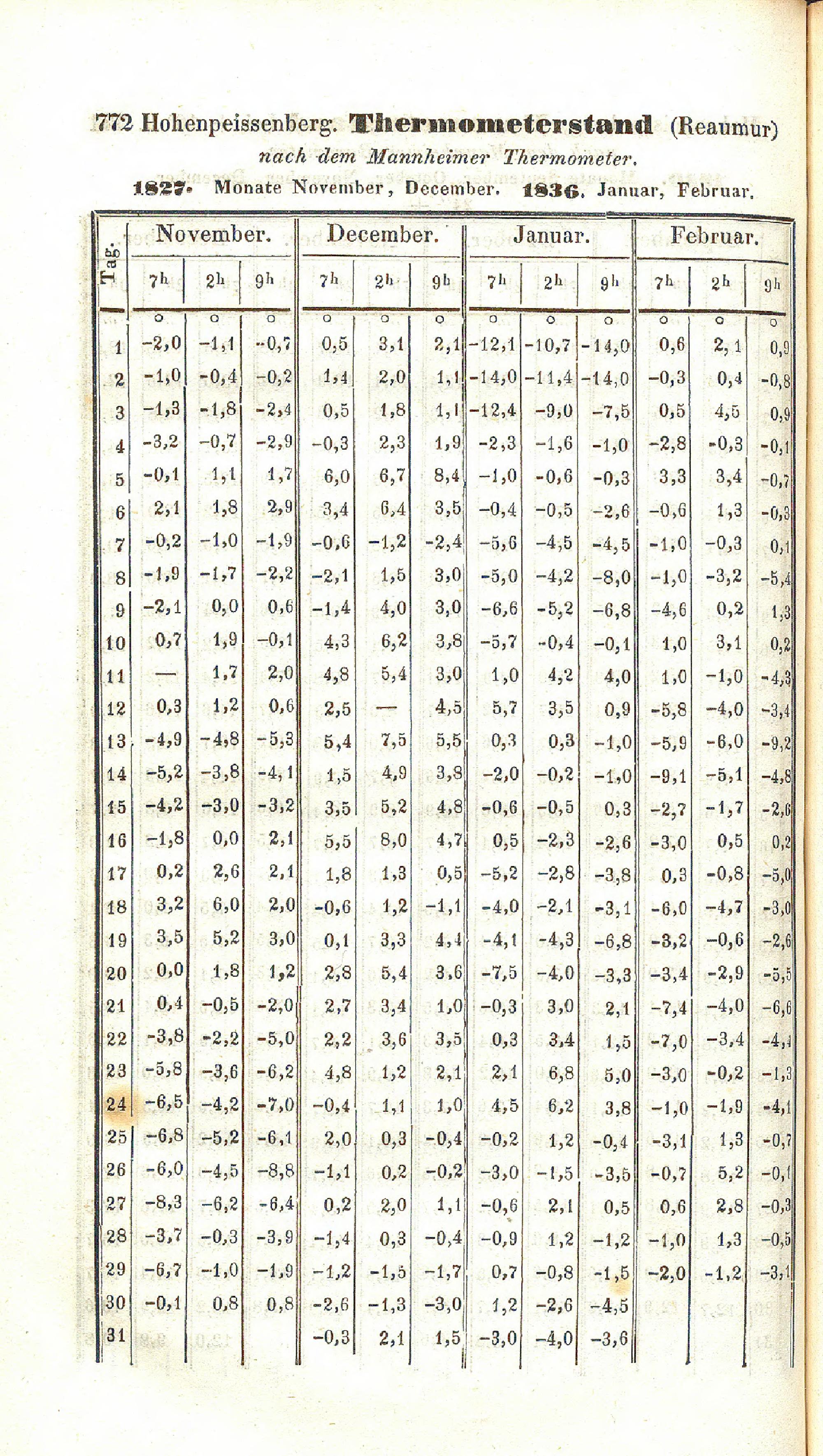 Beobachtungen des meteorologischen Observatoriums auf dem Hohenpeissenberg von 1792...
