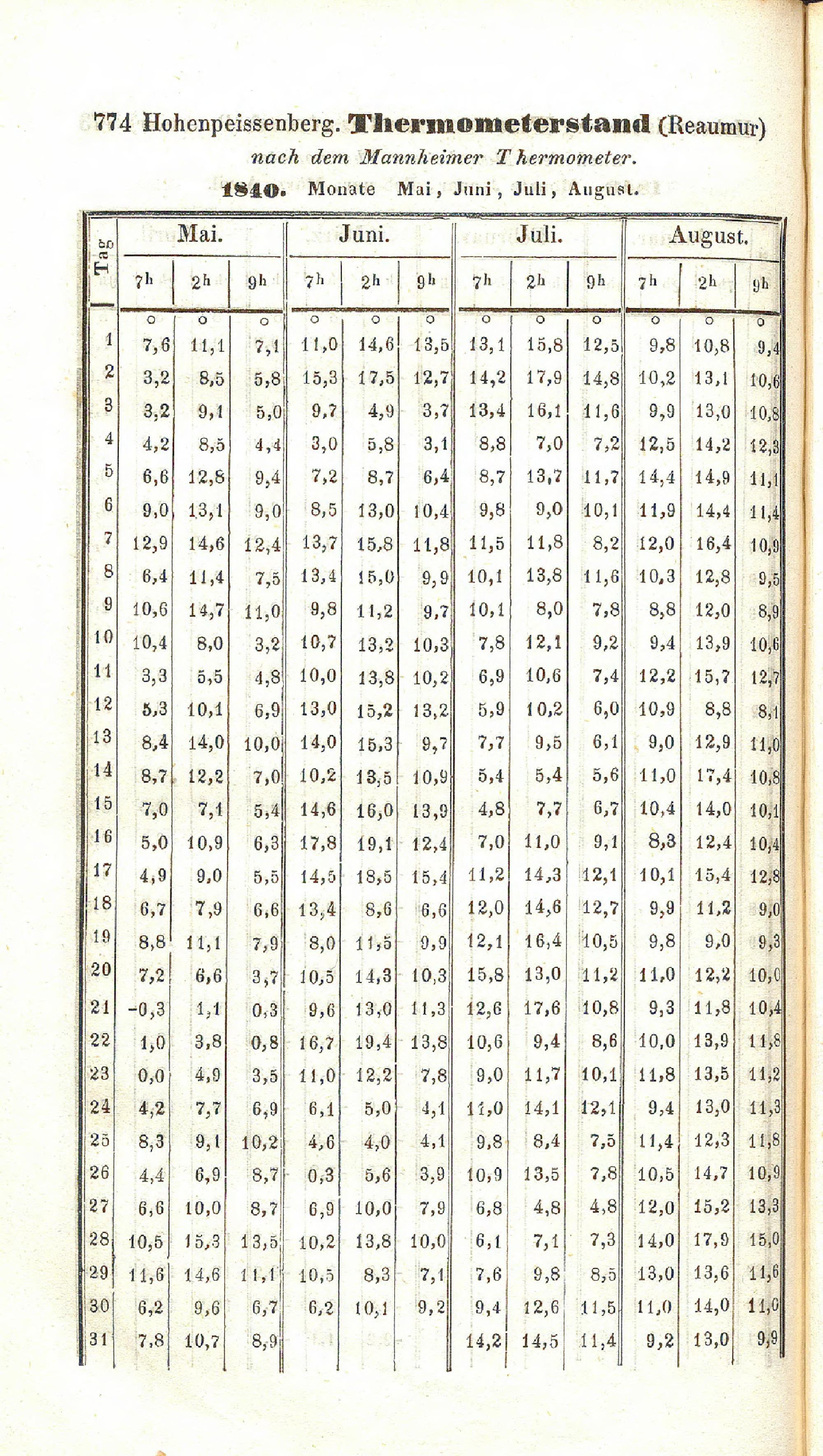 IX. Meteorologische Mittelwerthe für den Hohenpeißenberg