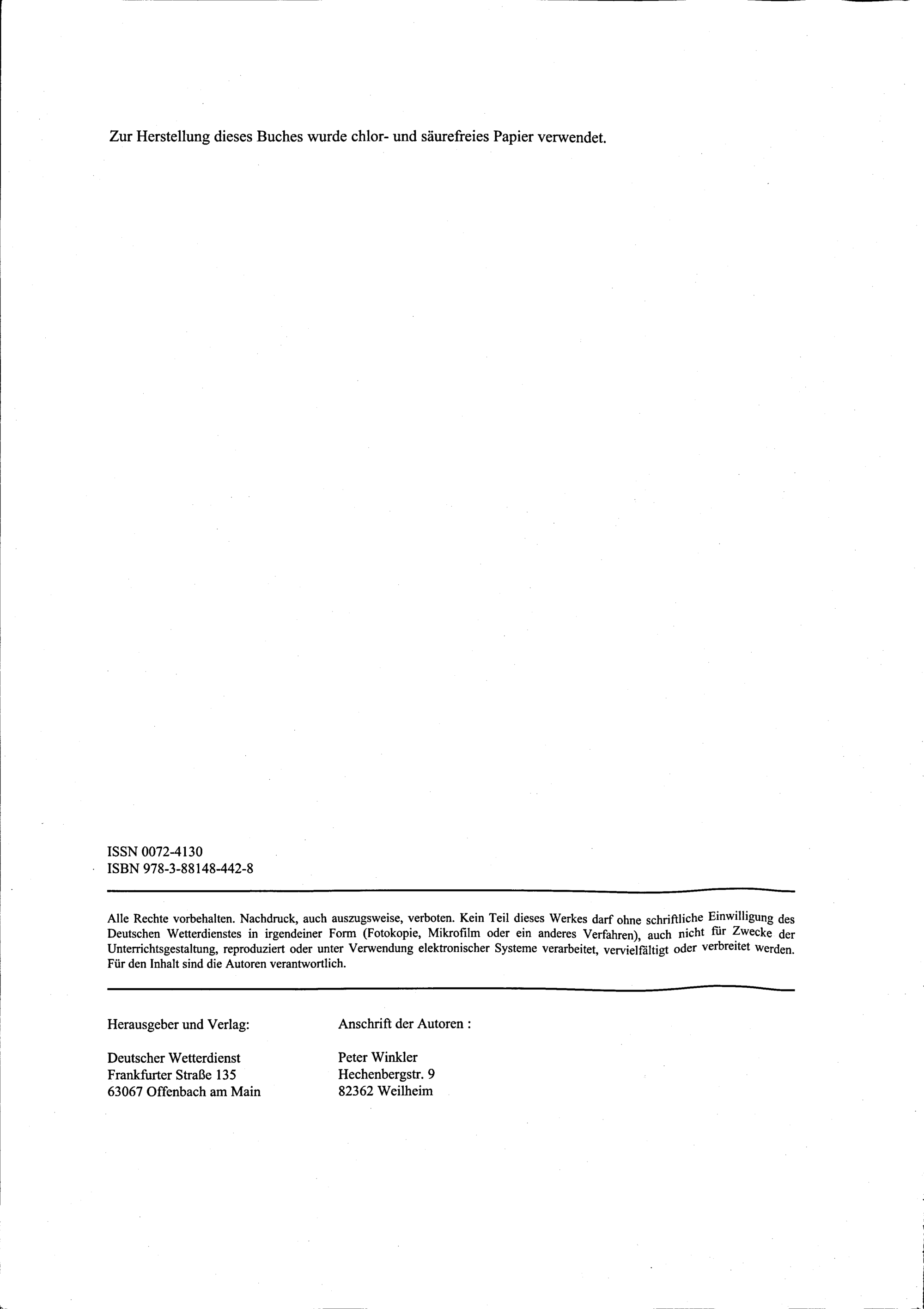 Wissenschaftshistorische Untersuchungen zur Geschichte und insbesondere zur Datenqualität der langen meteorologischen Reihen des Observatoriums Hohenpeißenberg / von Peter Winkler