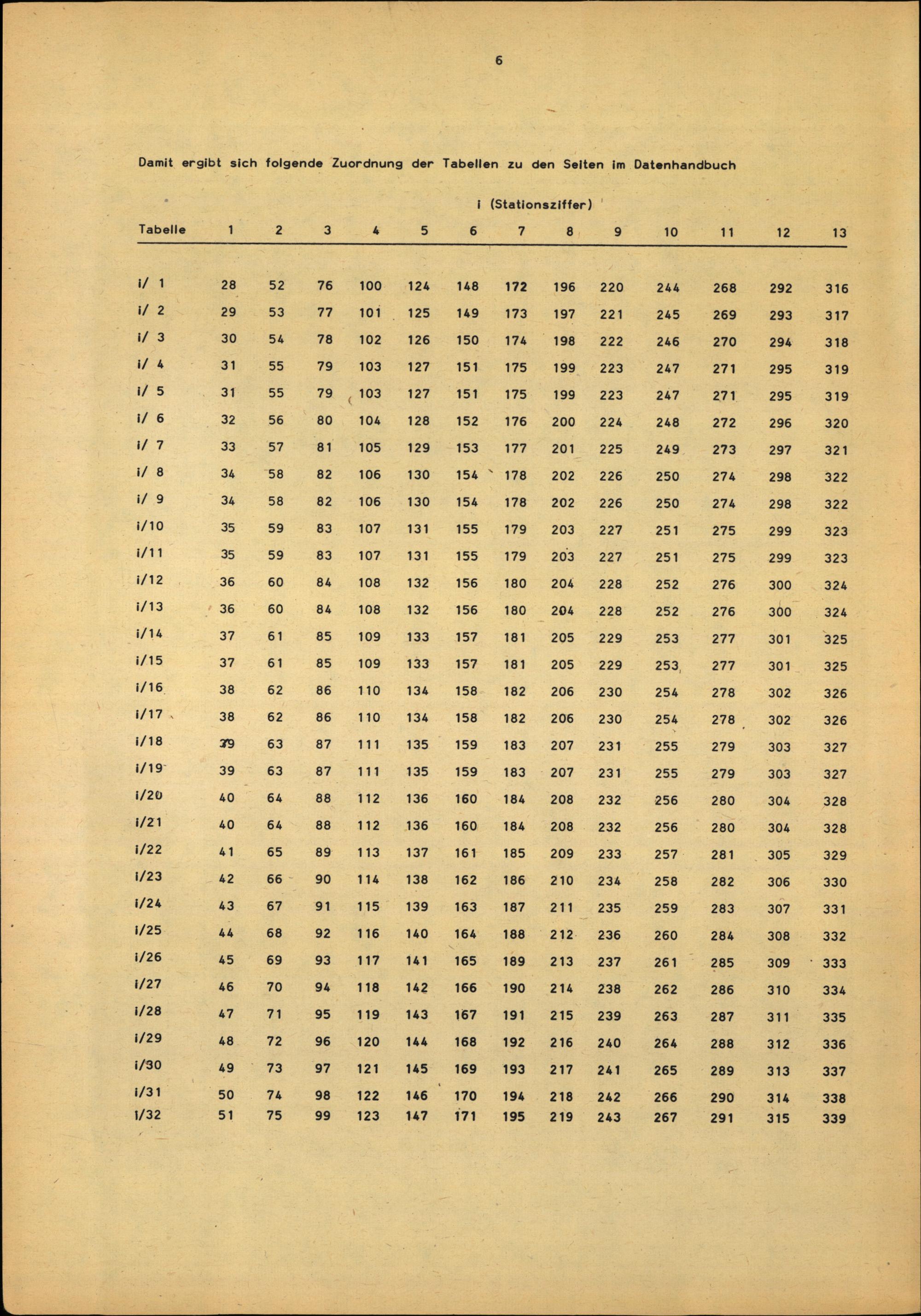 Spezielles Inhaltsverzeichnis für den Tabellenteil