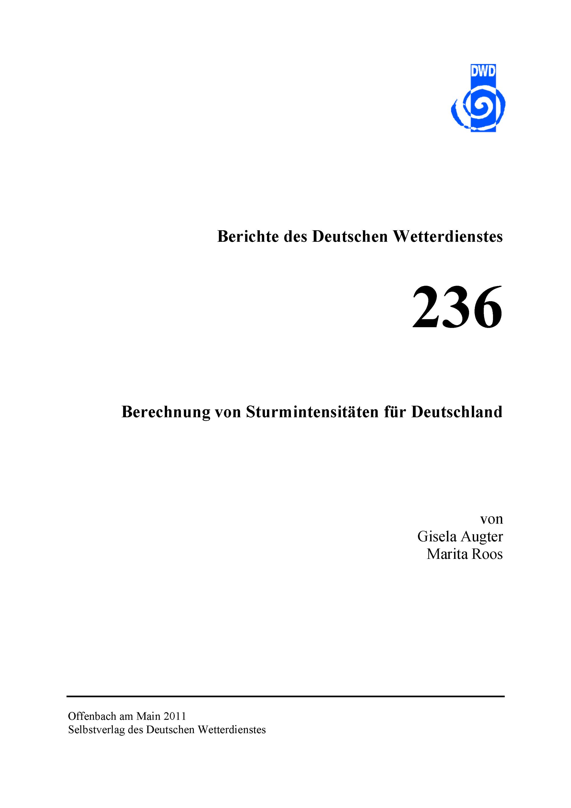 Berechnung von Sturmintensitäten für Deutschland / von Gisela Augter ; Marita Roos