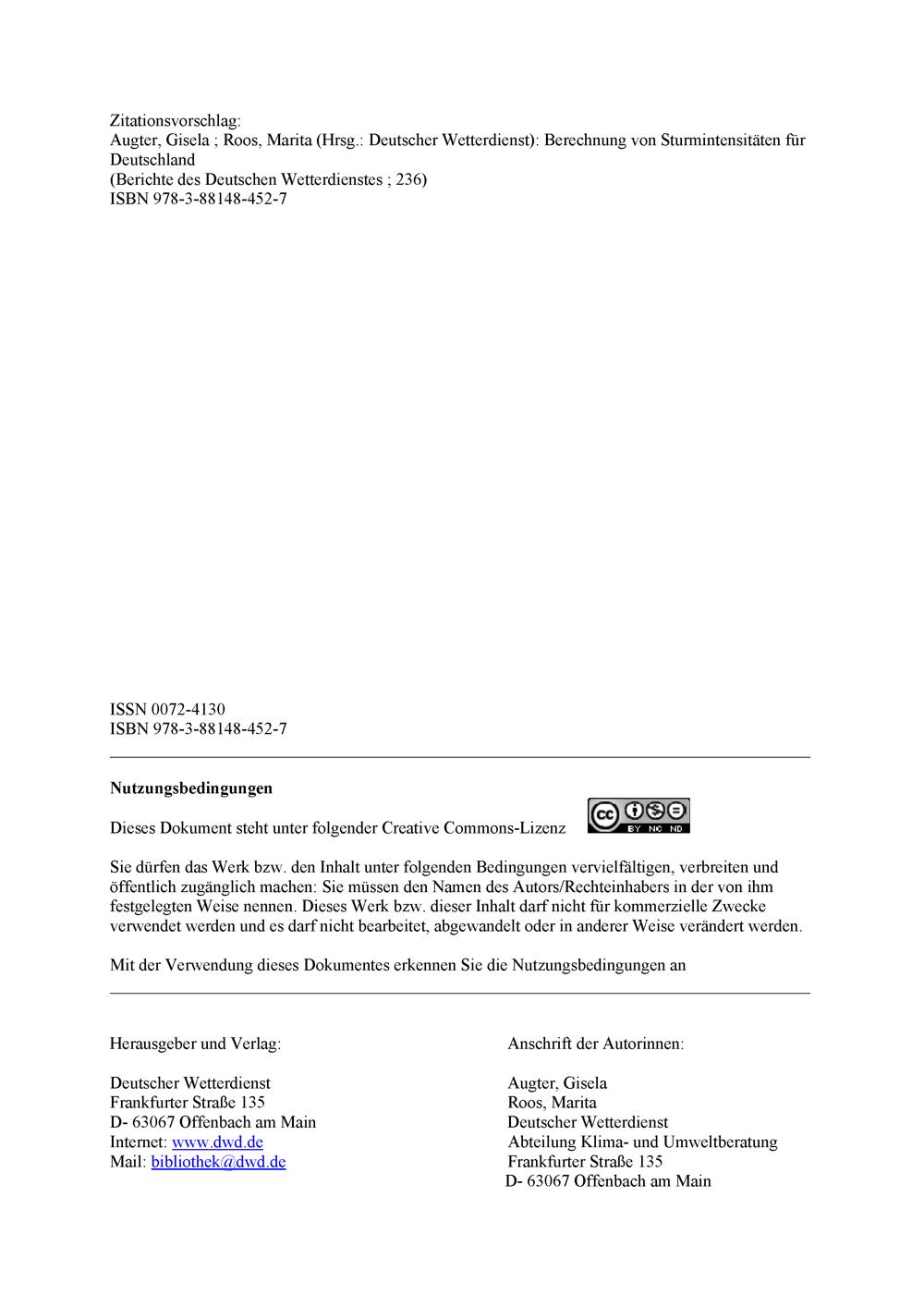 Berechnung von Sturmintensitäten für Deutschland / von Gisela Augter ; Marita Roos