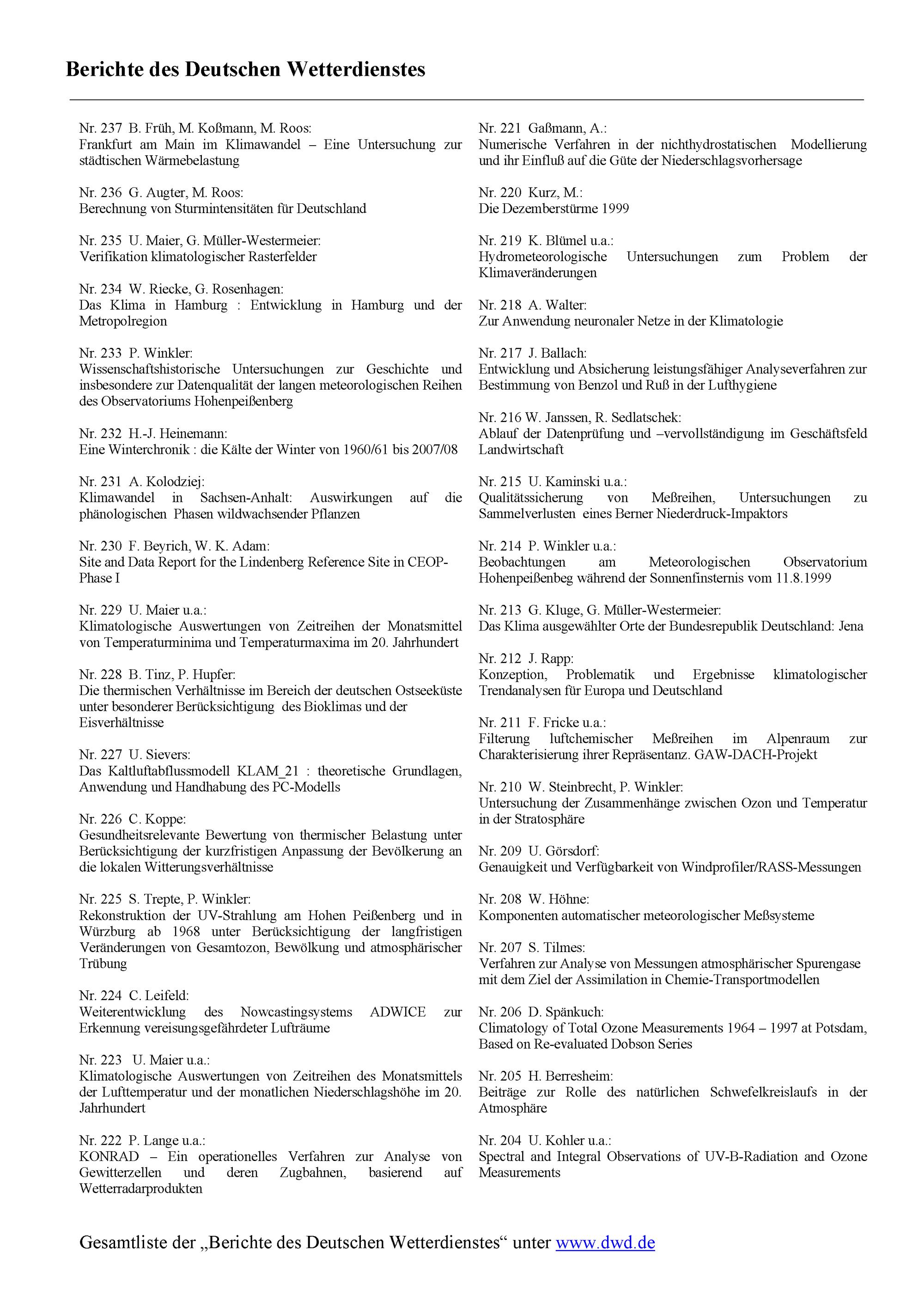 Berechnung von Sturmintensitäten für Deutschland / von Gisela Augter ; Marita Roos
