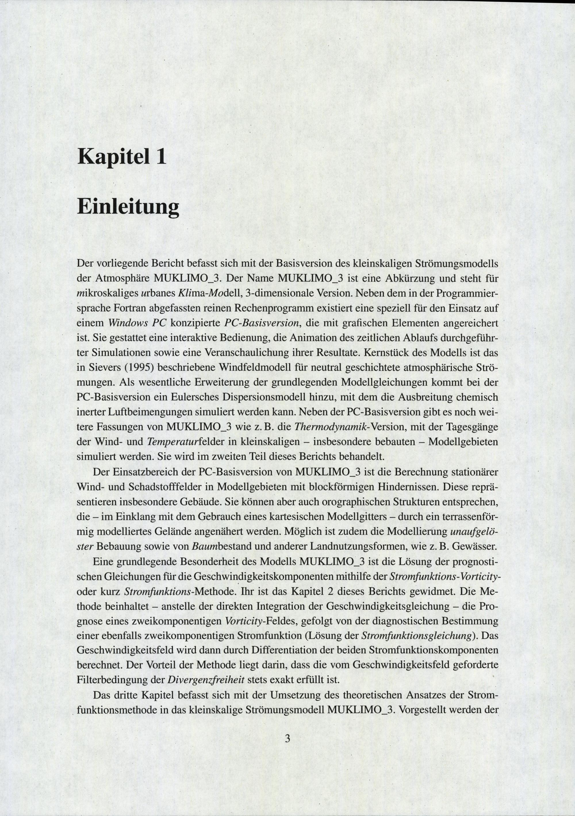 Das kleinskalige Strömungsmodell MUKLIMO_3. Teil 1: Theoretische Grundlagen, PC-Basisversion...