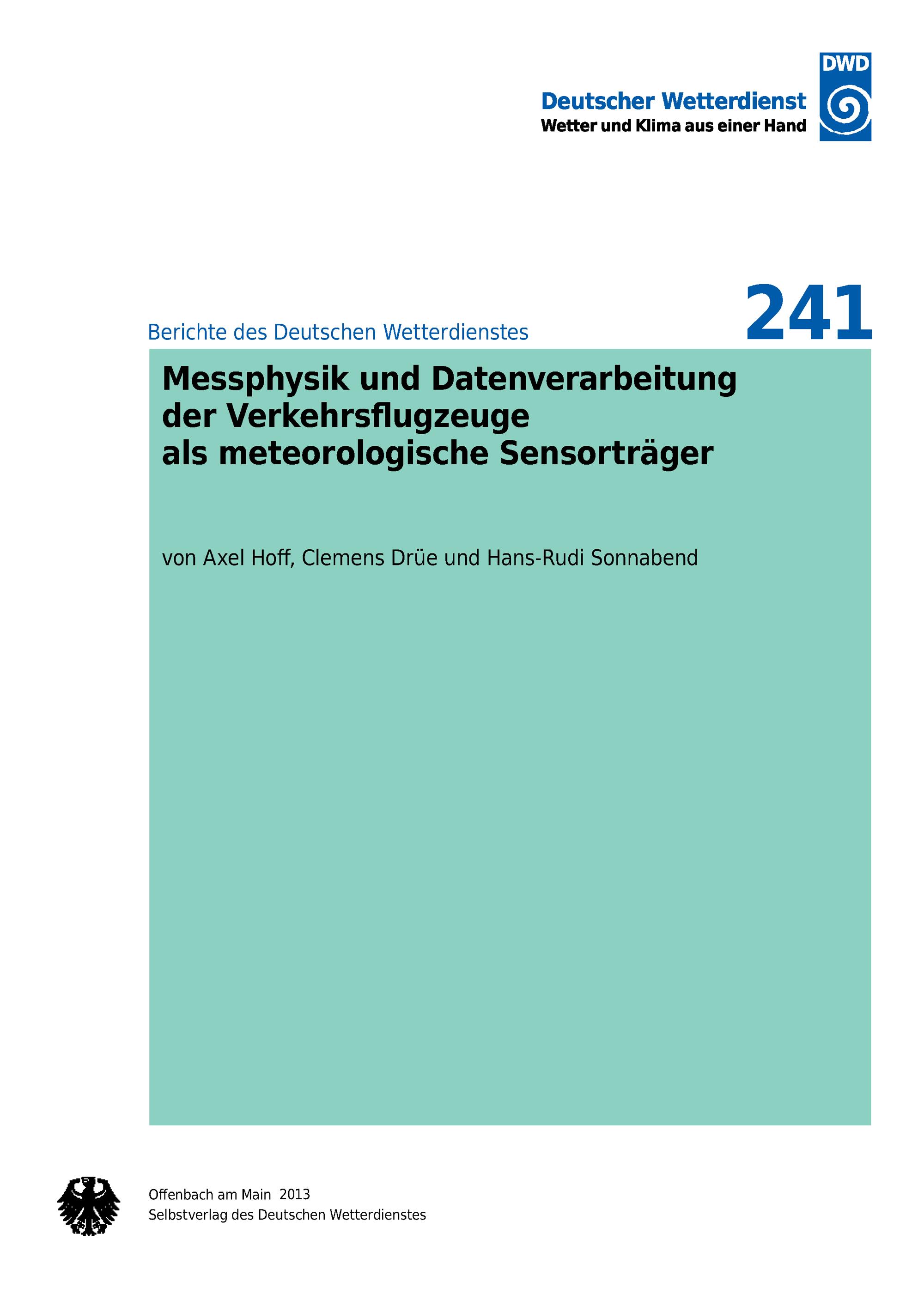 Messphysik und Datenverarbeitung der Verkehrsflugzeuge als meteorologische Sensorträger / von Axel Hoff, Clemens Drüe und Hans-Rudi Sonnabend