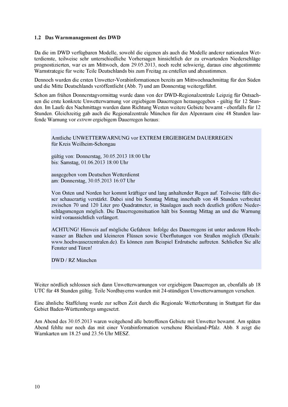 Das Hochwasser an Elbe und Donau im Juni 2013 : Wetterentwicklung und Warnmanagement des DWD : hydrometeorologische Rahmenbedingungen / von Christa Stein und Gabriele Malitz ; unter Mitarbeit von Andreas Becker, Uwe Böhm, Annegret Gratzki, Jens Hoffmann, Martin Jonas, Burkhard Kirsch, Franz-Josef Löpmeier, Gerhard Lux, Saskia Pietsch, Ulf Riediger, Thomas Schmidt, Thomas Schumann, Rolf Ullrich, Mareen Wegener, Jens Winninghoff und Volker Wünsche