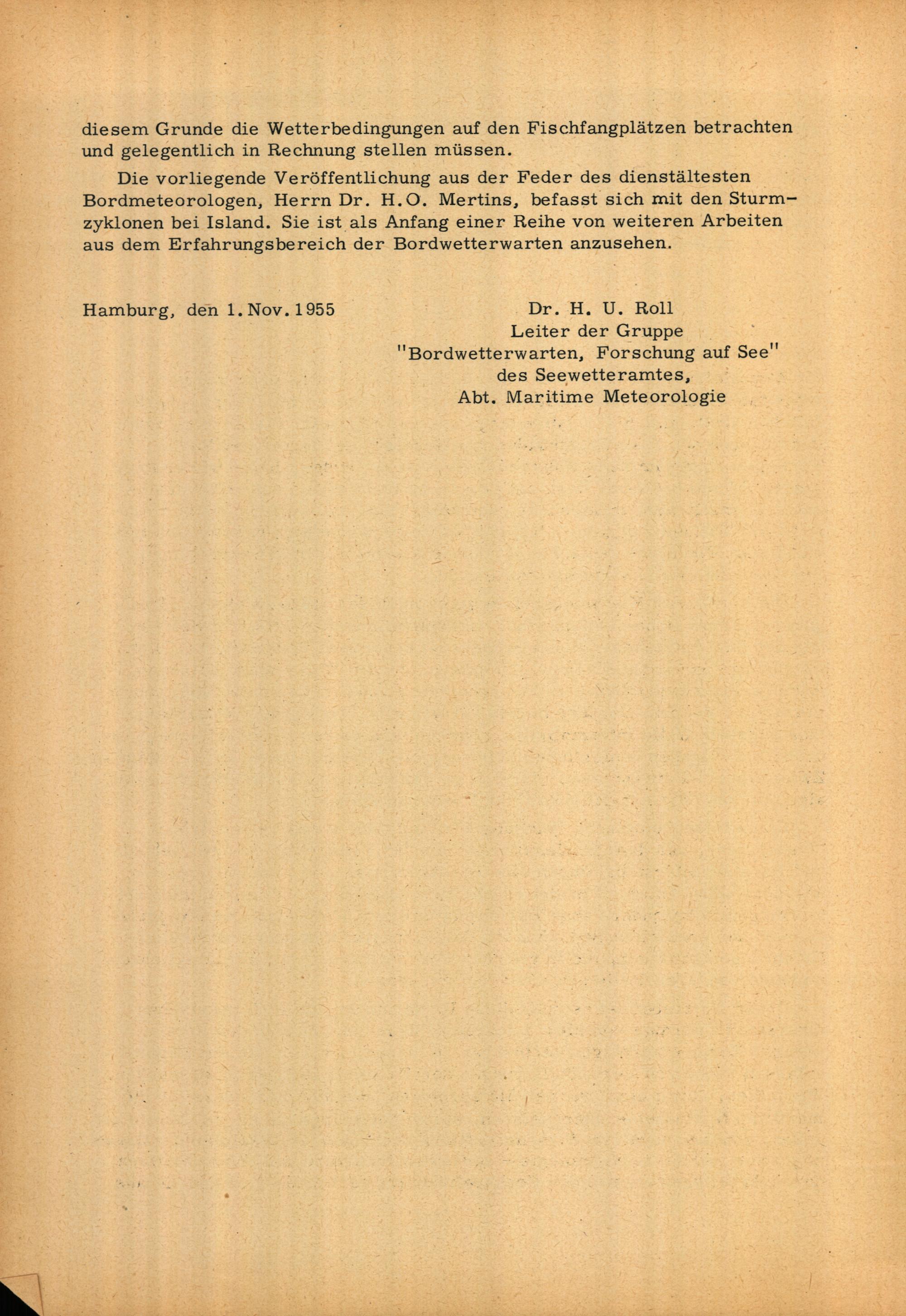 Sturmwetterlagen bei Island, 1950 - 1954 : 1. Synoptischer Teil, 2. Statistischer Teil / bearb. von H. O. Mertins