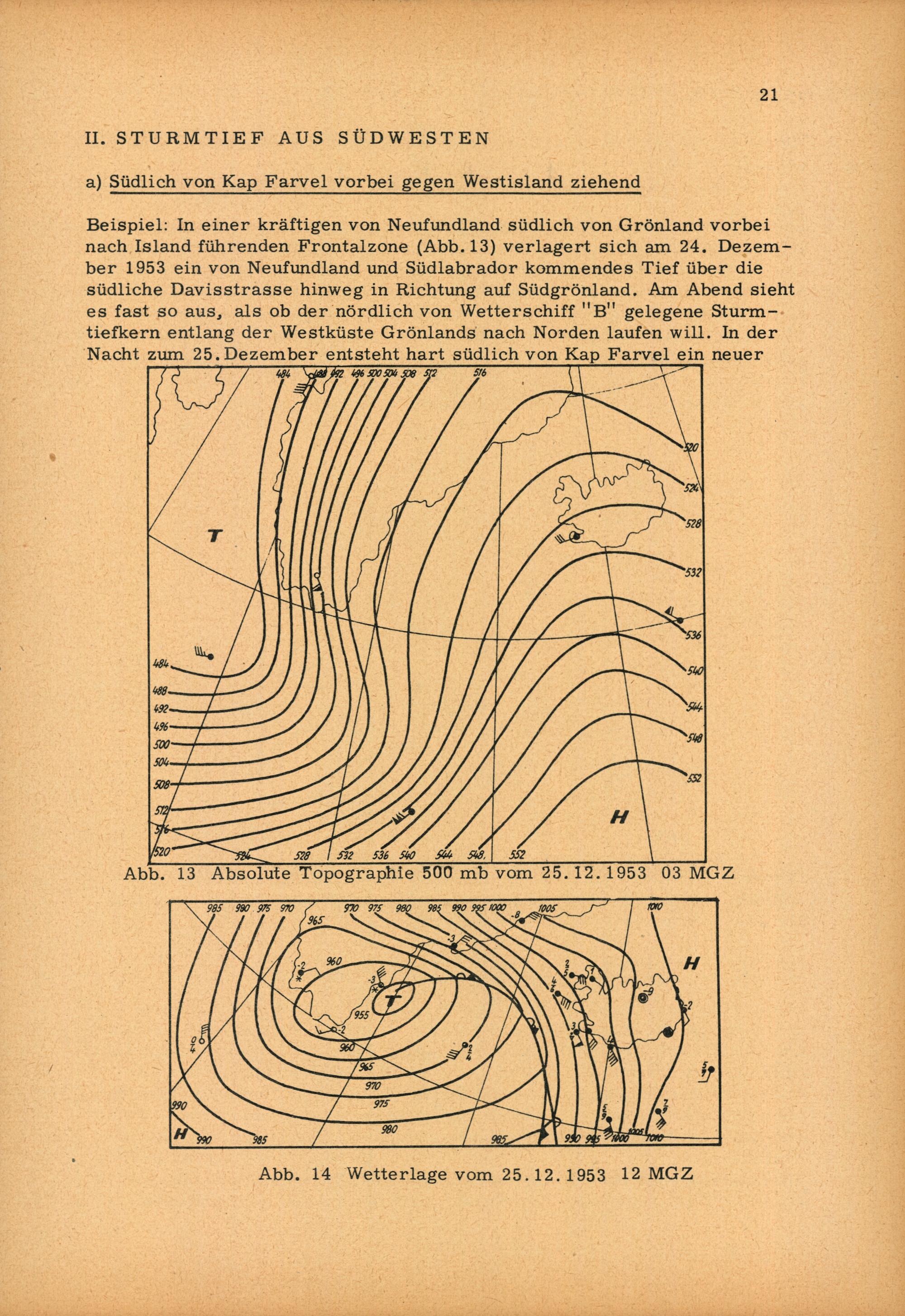 Sturmwetterlagen bei Island, 1950 - 1954 : 1. Synoptischer Teil, 2. Statistischer Teil / bearb. von H. O. Mertins