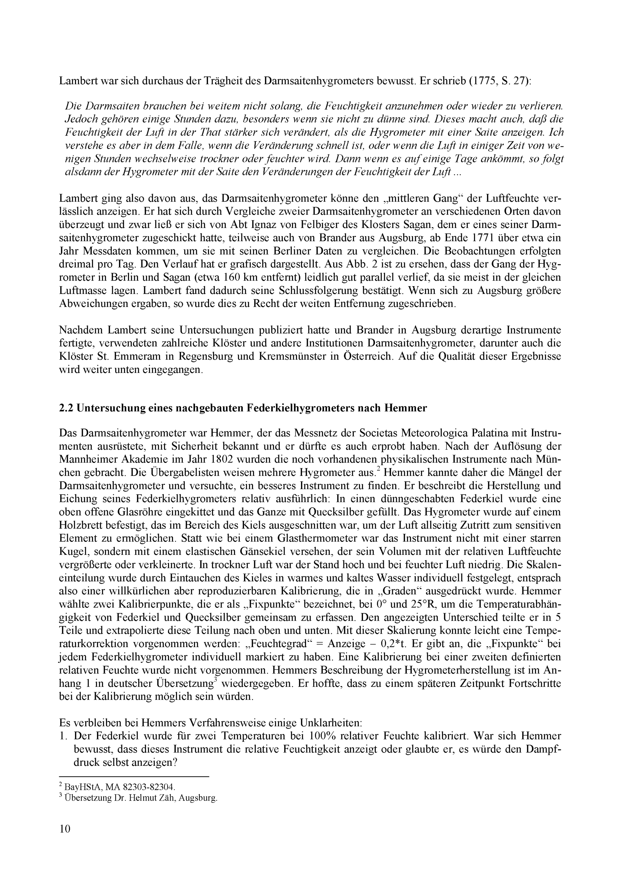 Anhang 1: Das Federkielhygrometer von J. J. Hemmer (deutsche Übersetzung von H. Zäh)