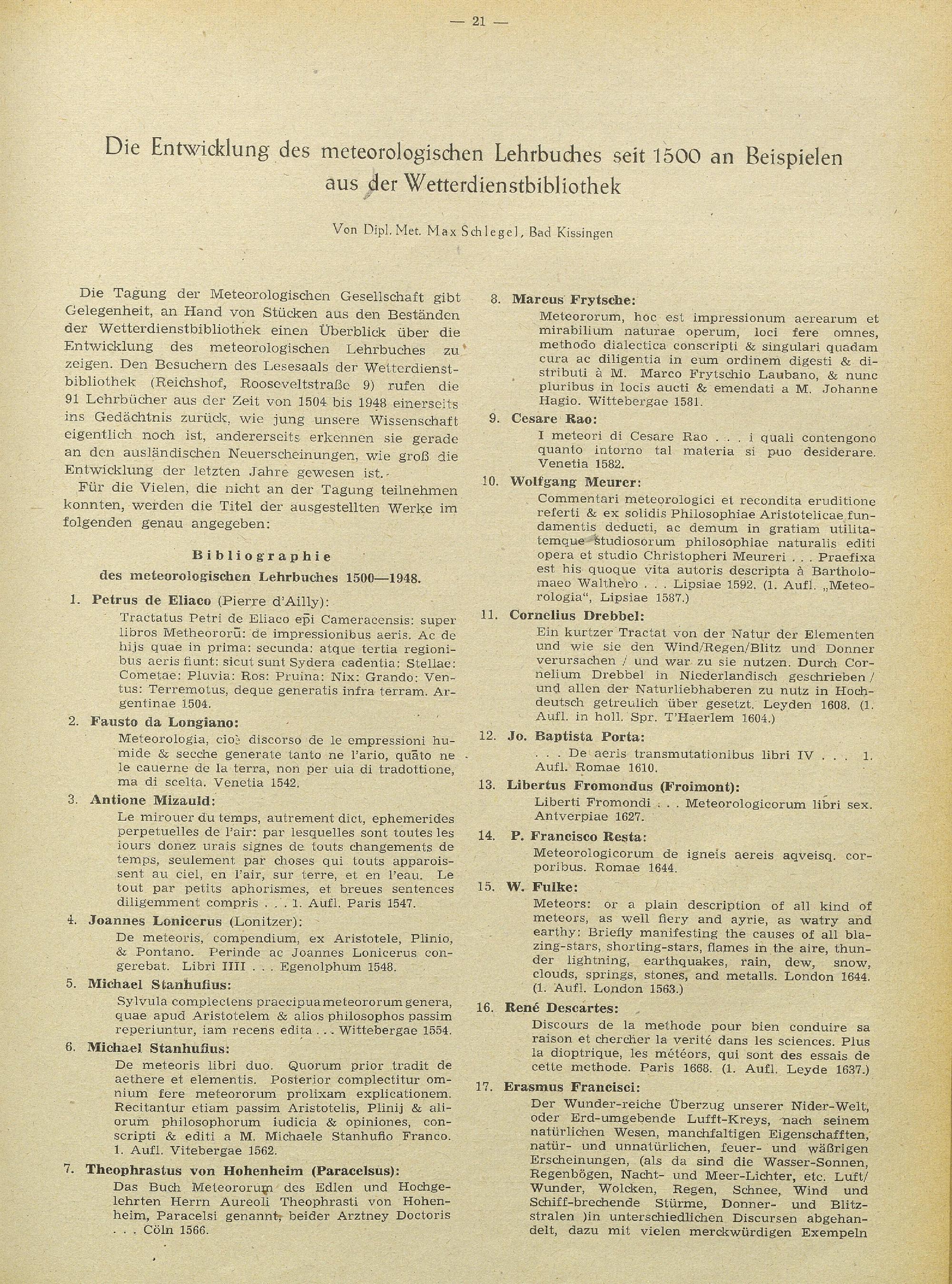 Die Vorträge anläßlich der 1. Tagung der Meteorologischen Gesellschaft Bad Kissingen : vom 1. bis 3. Oktober 1949 in Bad Kissingen / [Zentralamt des Deutschen Wetterdienstes in der US-Zone]