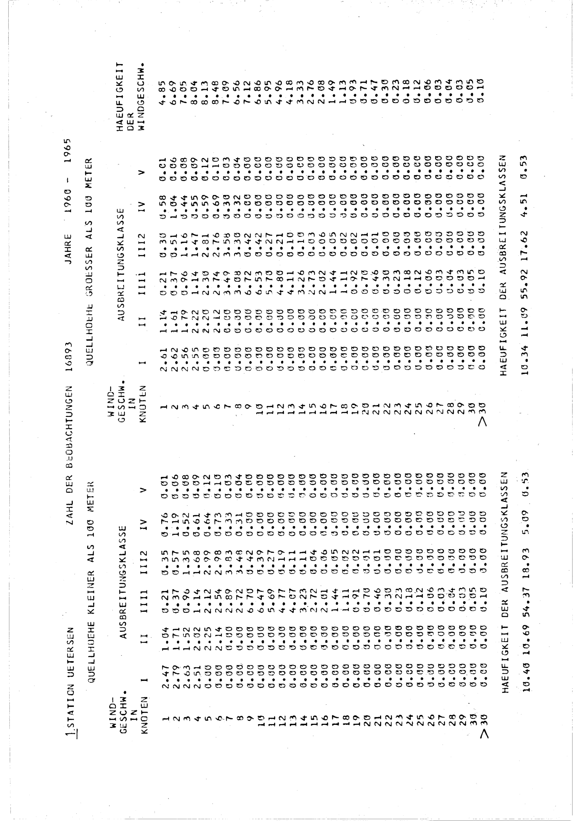 I. Die Häufigkeitsverteilungen von Ausbreitungsklasse und Windgeschwindigkeit für 30 Stationen in der BRD