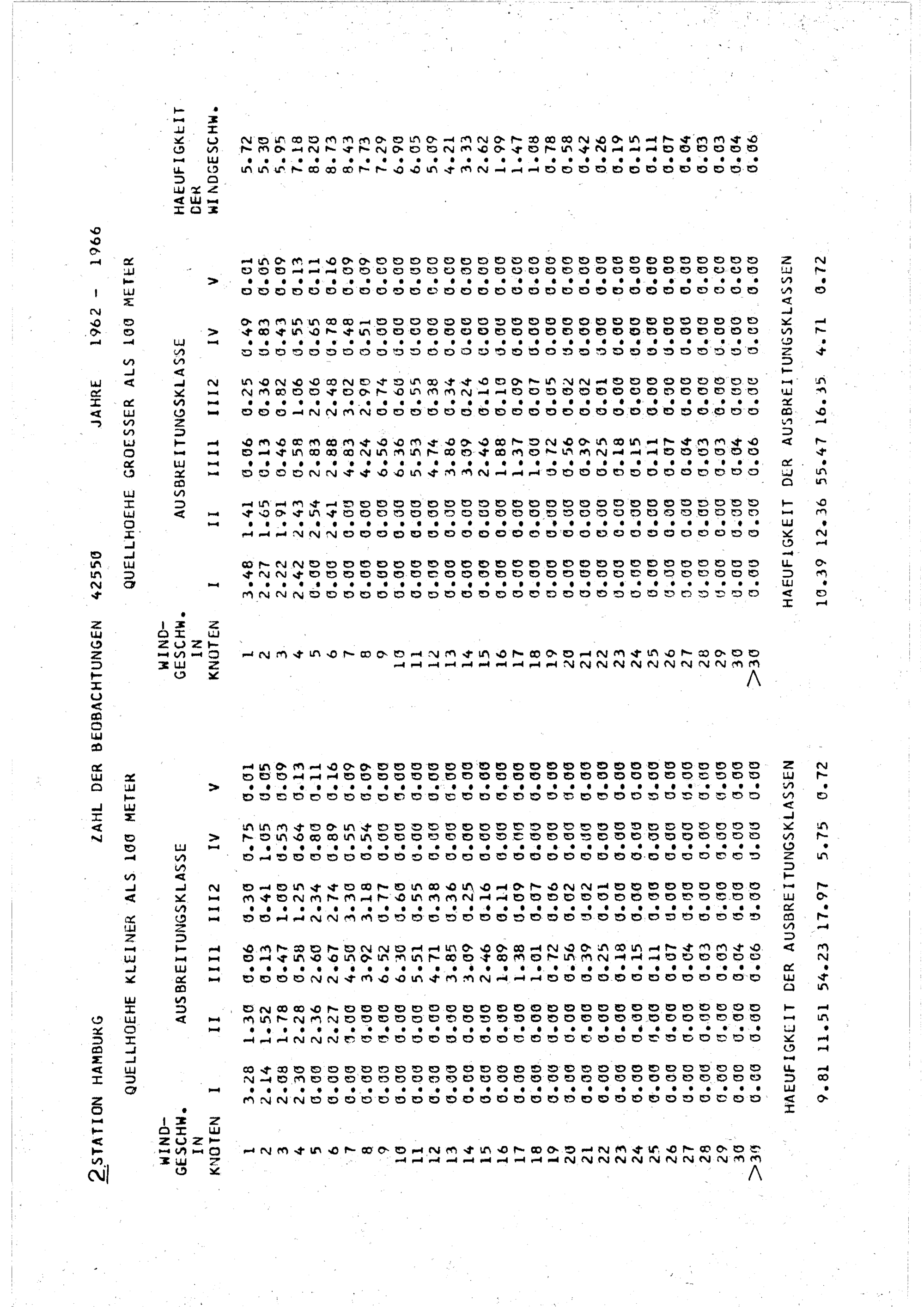 I. Die Häufigkeitsverteilungen von Ausbreitungsklasse und Windgeschwindigkeit für...