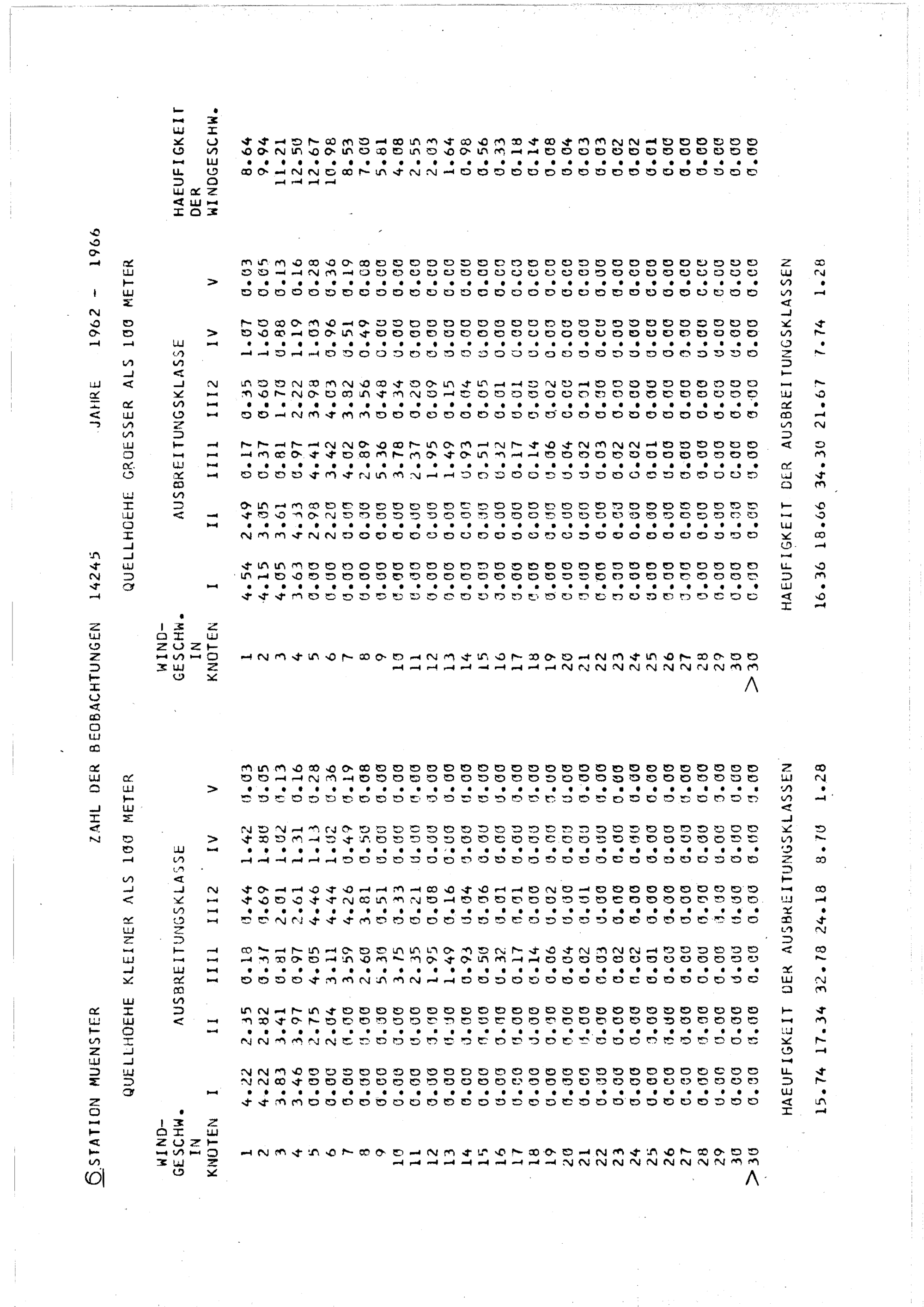 I. Die Häufigkeitsverteilungen von Ausbreitungsklasse und Windgeschwindigkeit für...